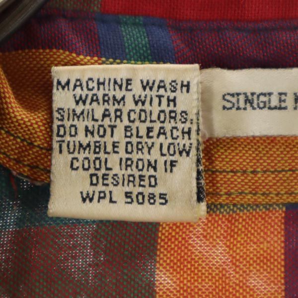 SEARSROEBUCK シアーズローバック 80s ヴィンテージ 緑タグ チェック柄 長袖 ボタンダウンシャツ L 赤系 メンズ