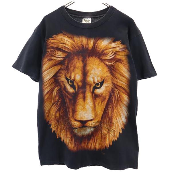 TENNESSEE RIVER テネシーリバー 90s オールド USA製 ライオン柄 プリント 半袖 Tシャツ M ブラック系 メンズ