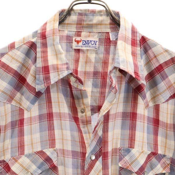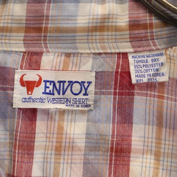 ENVOY 70s 80s ヴィンテージ チェック 長袖 ウエスタンシャツ レッド系 メンズ