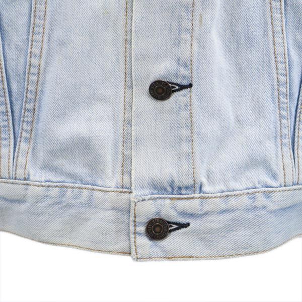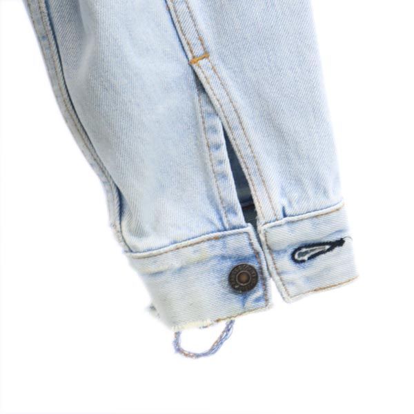 | 詳細 | 2000年5月生産のリーバイスになります。のデニム特有のスレ、アタリがあり、全体的に汚れあり、襟まわりや袖に変色している箇所あり。袖口や端々に若干の擦り切れ、擦れ破れあり。古着にご理解の上ご購入をお願い致します。 |
