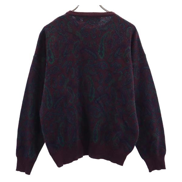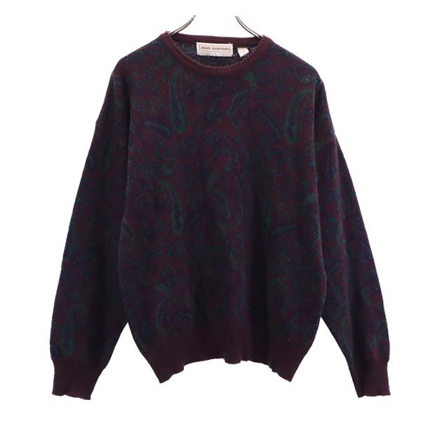 JOHN ASHFORD ジョンアッシュフォード 90s ウールブレンド イタリア製 総柄 長袖 セーター M ボルドー ニット メンズ