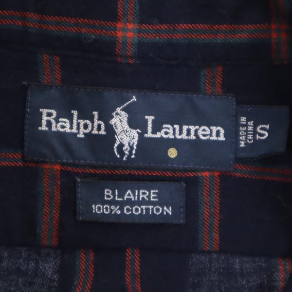 ラルフローレン 90s オールド チェック 長袖 ボタンダウンシャツ S ネイビー RALPH LAUREN メンズ