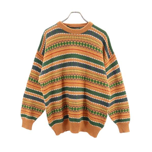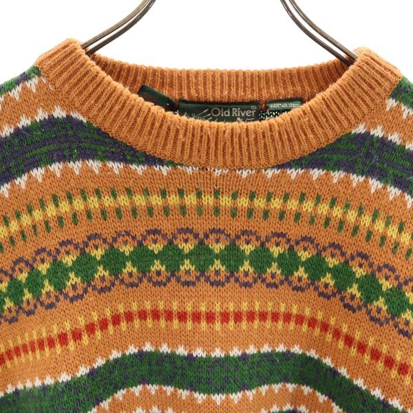 Old River オールドリバー 90s オールド 総柄 長袖 ニット XXL オレンジ系 ビッグサイズ セーター メンズ