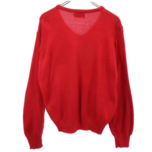 IZOD LACOSTE アイゾッドラコステ 70s USA製 ヴィンテージ 糸巻きタグ 長袖 Vネック ニット M レッド セーター メンズ