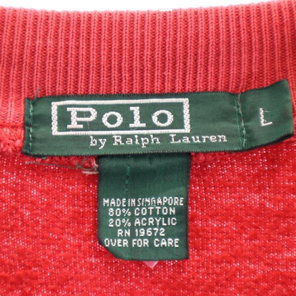 ポロバイラルフローレン 80s バックプリント ヴィンテージ 緑タグ ボーイズ 長袖 スウェット ジップジャケット L レッド系 Polo by Ralph Lauren メンズ