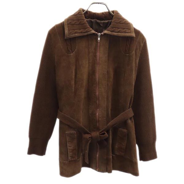 OLD オールド 80s 90s レザー ニット ジャケット ブラウン レディース