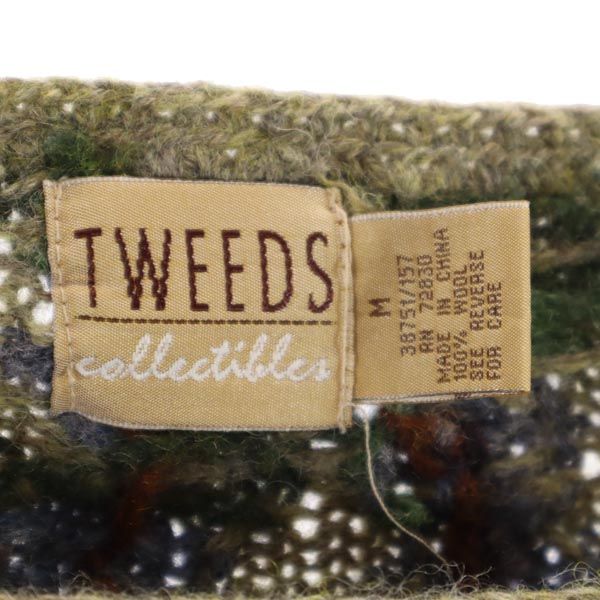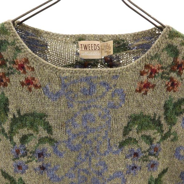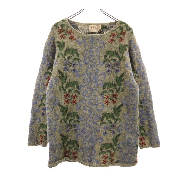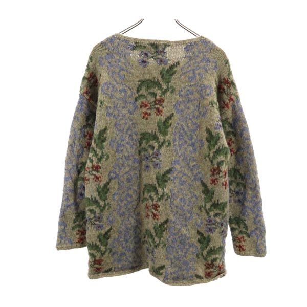 90s オールド 総柄 長袖 ウール100% セーター M ベージュ系 ニット メンズ