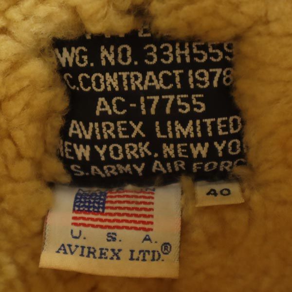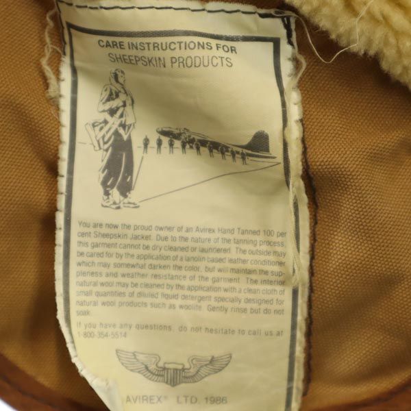アヴィレックス USA製 B-3 長袖 シープスキン フライトジャケット 40 ブラウン系 AVIREX ムートン US ARMY メンズ