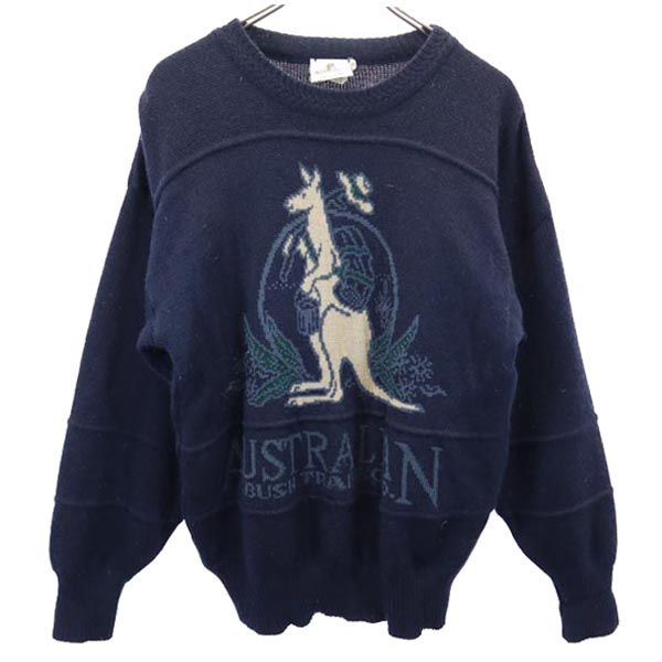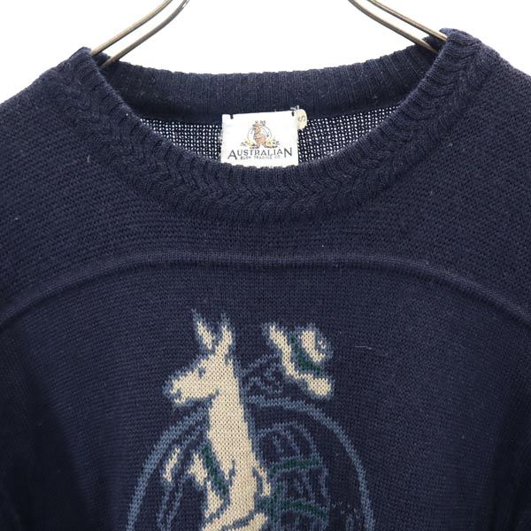 AUSTRALIAN 80s 90s オールド カンガルー 長袖 ニット S ネイビー系 セーター メンズ