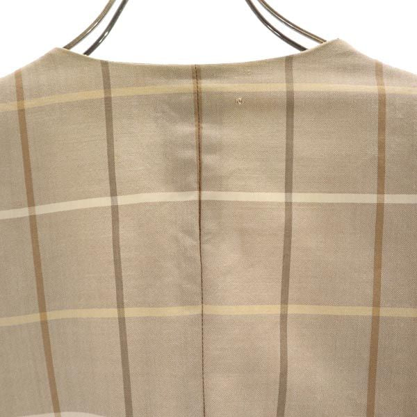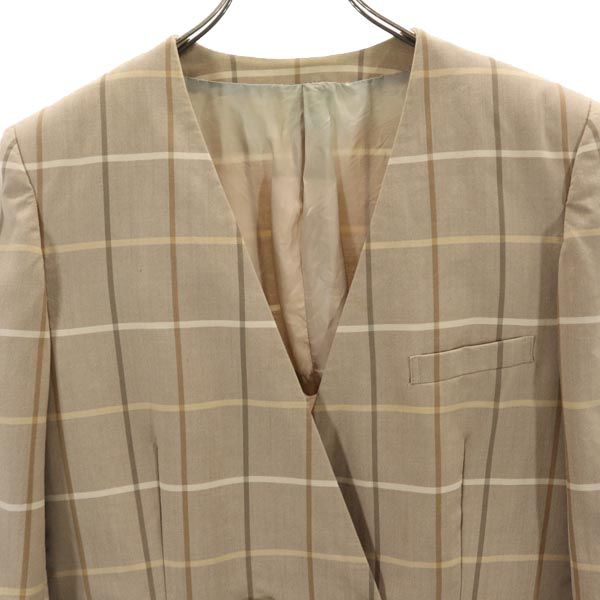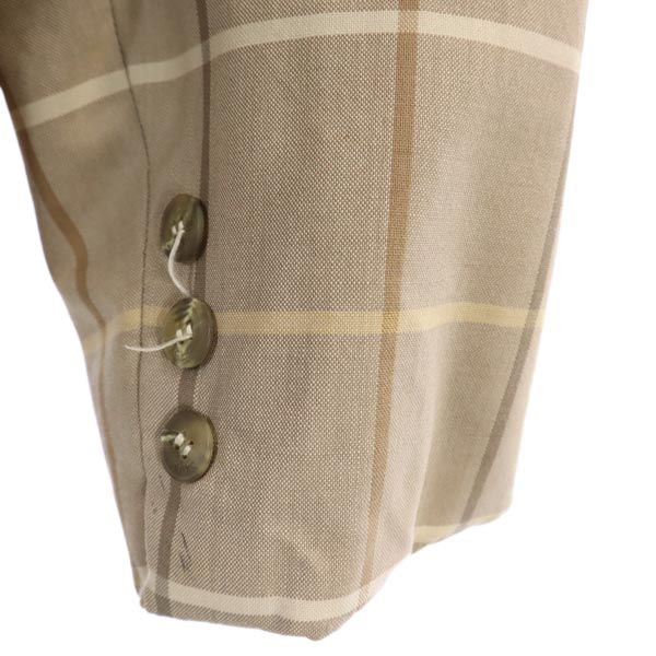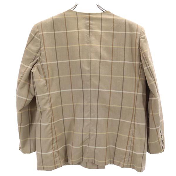 Burberrys バーバリーズ 90s オールド 白タグ チェック柄 ノーカラージャケット 11 ブラウン系 ダブルボタン レディース