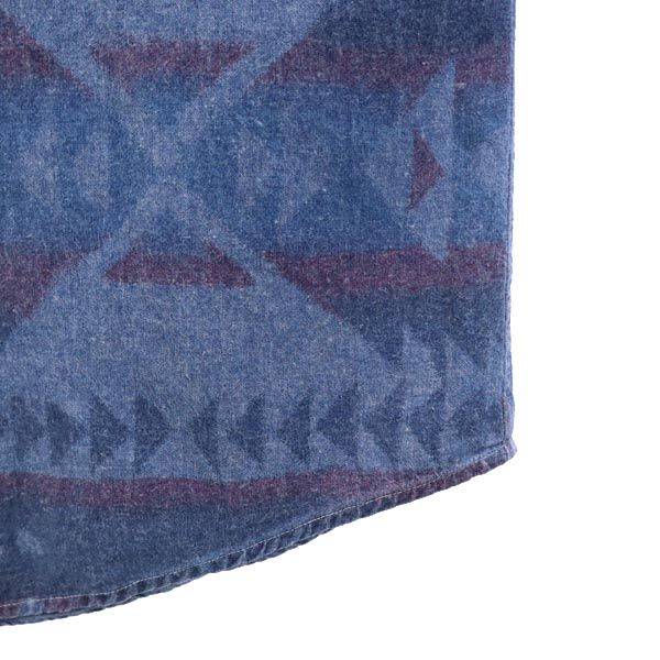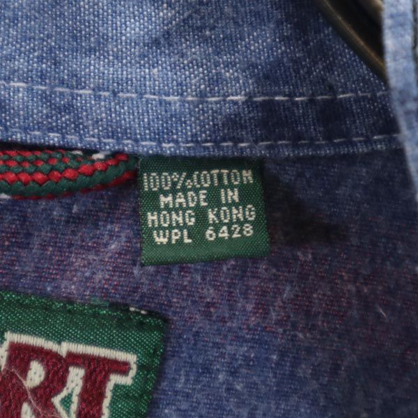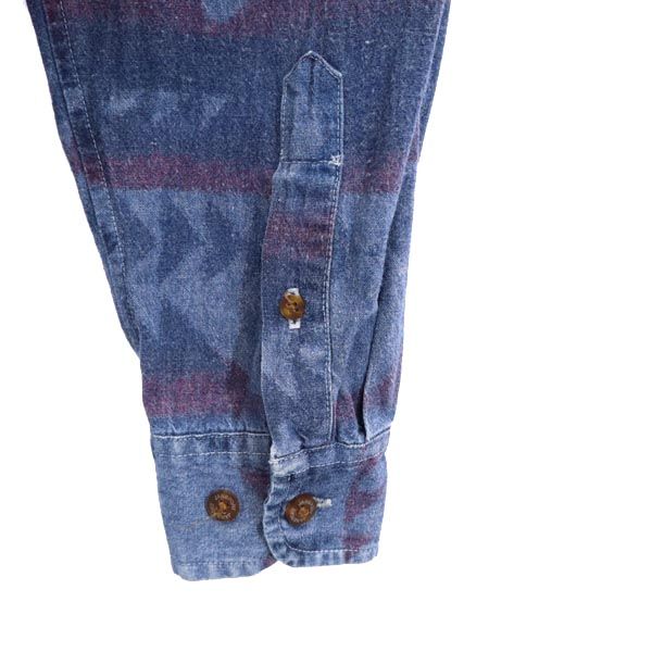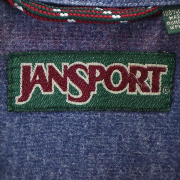 JANSPORTS ジャンスポーツ 90s オールド 総柄 長袖 バンドカラー コットンシャツ L ブルー系 メンズ