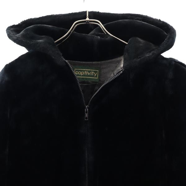 captivity 80s 90s USA製 オールド フェイクファー ジャケット 45481 ブラック フード レディース