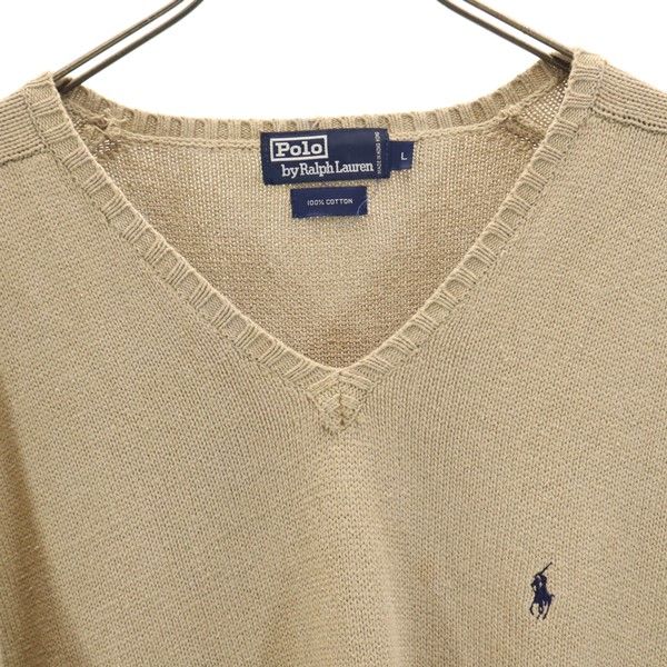 ポロバイラルフローレン 90s オールド 長袖 Vネック コットン セーター L ベージュ系 Polo by Ralph Lauren ニット メンズ