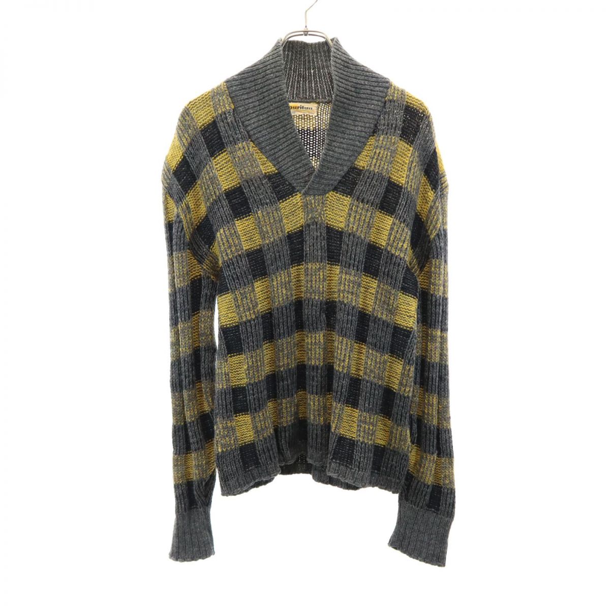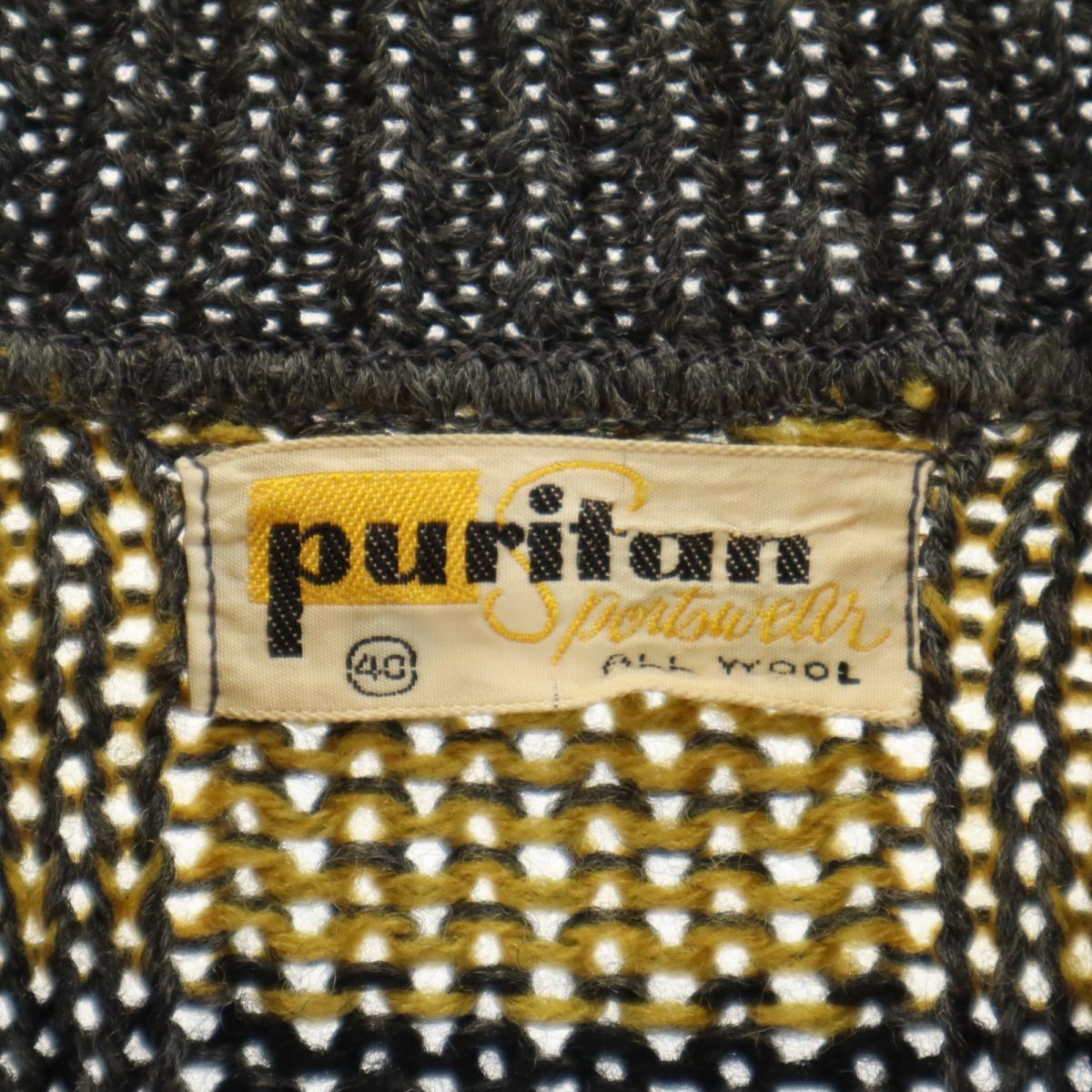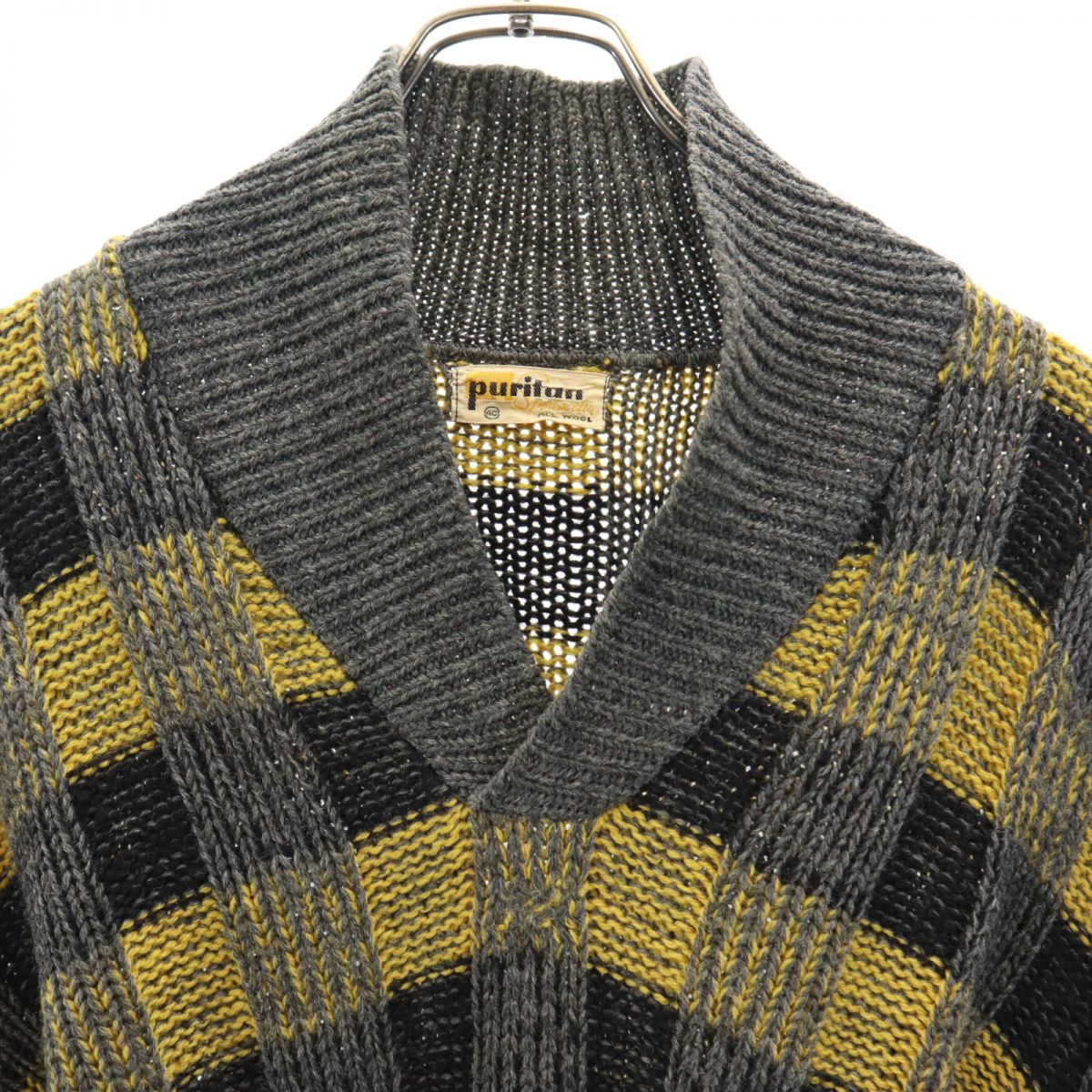 ピューリタン 50s ヴィンテージ チェック 長袖 クロスマフラーカラー ウール セーター 40 グレー ニット メンズ