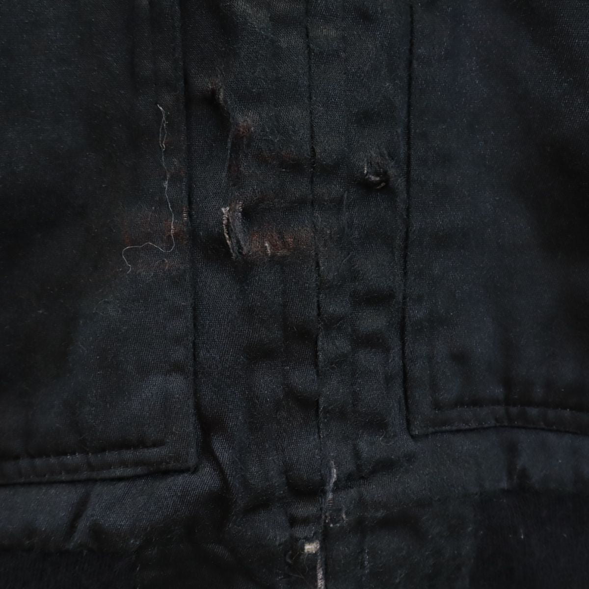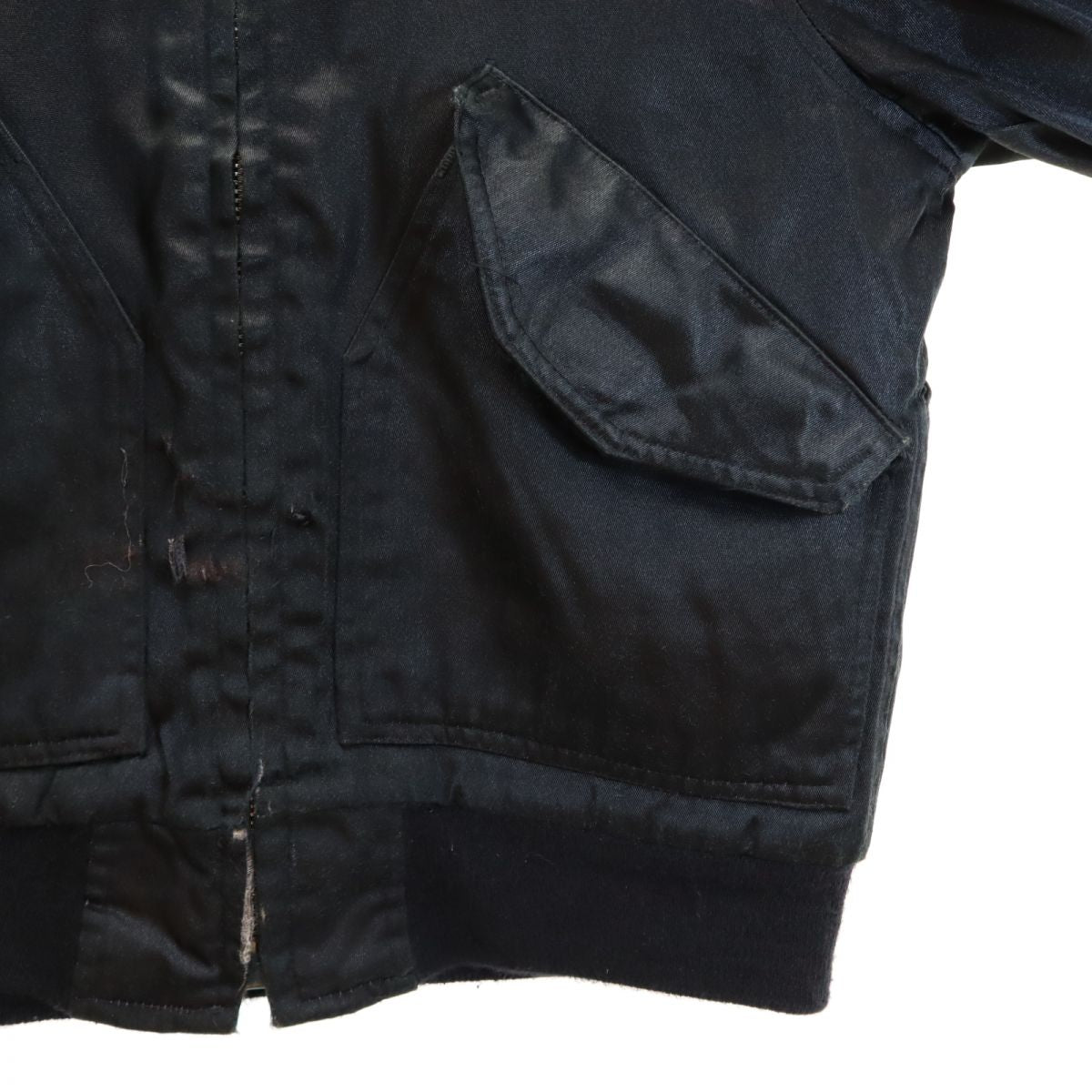 | 詳細 | 全体的に薄汚れ、首周りや前身頃、袖口に擦り切れ破れ、左袖口に青い汚れあり。ファスナーが上まで上がりません。かなりの着用感ですが、ご理解の上ご購入をお願いいたします。 |