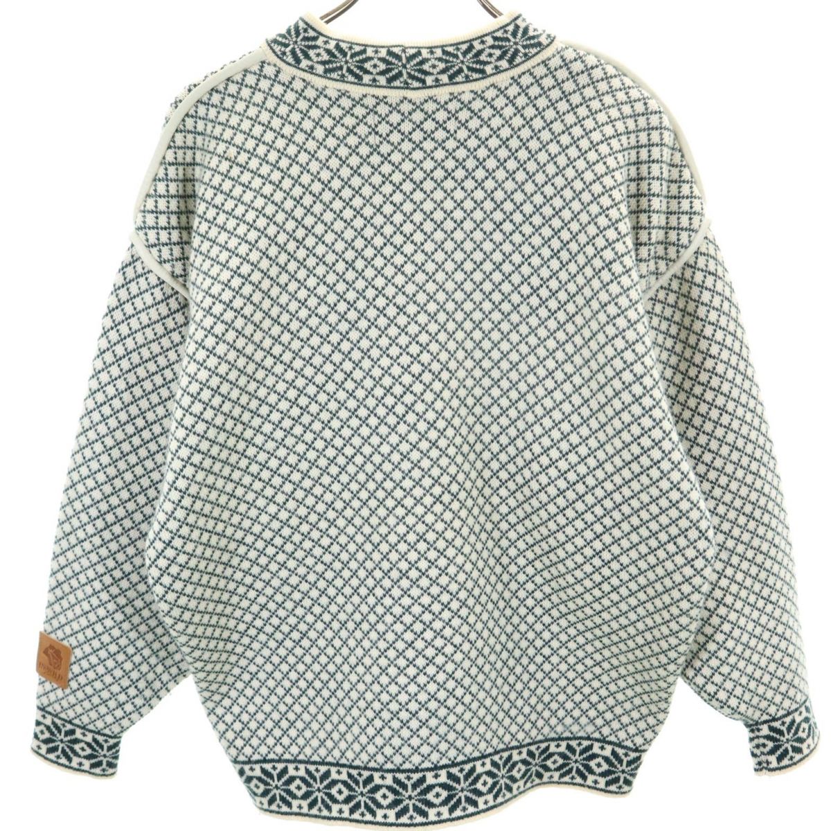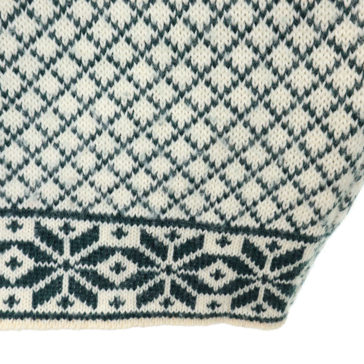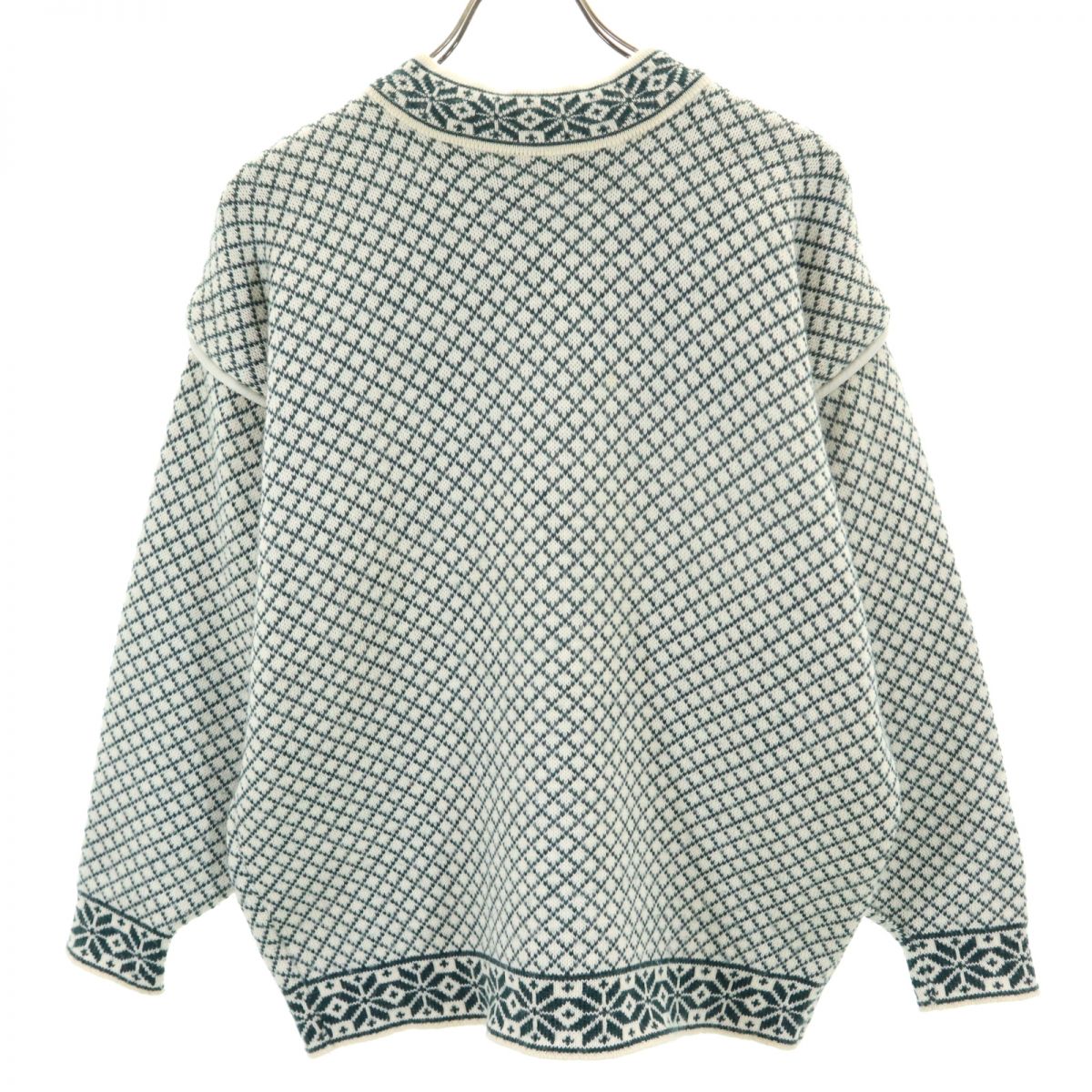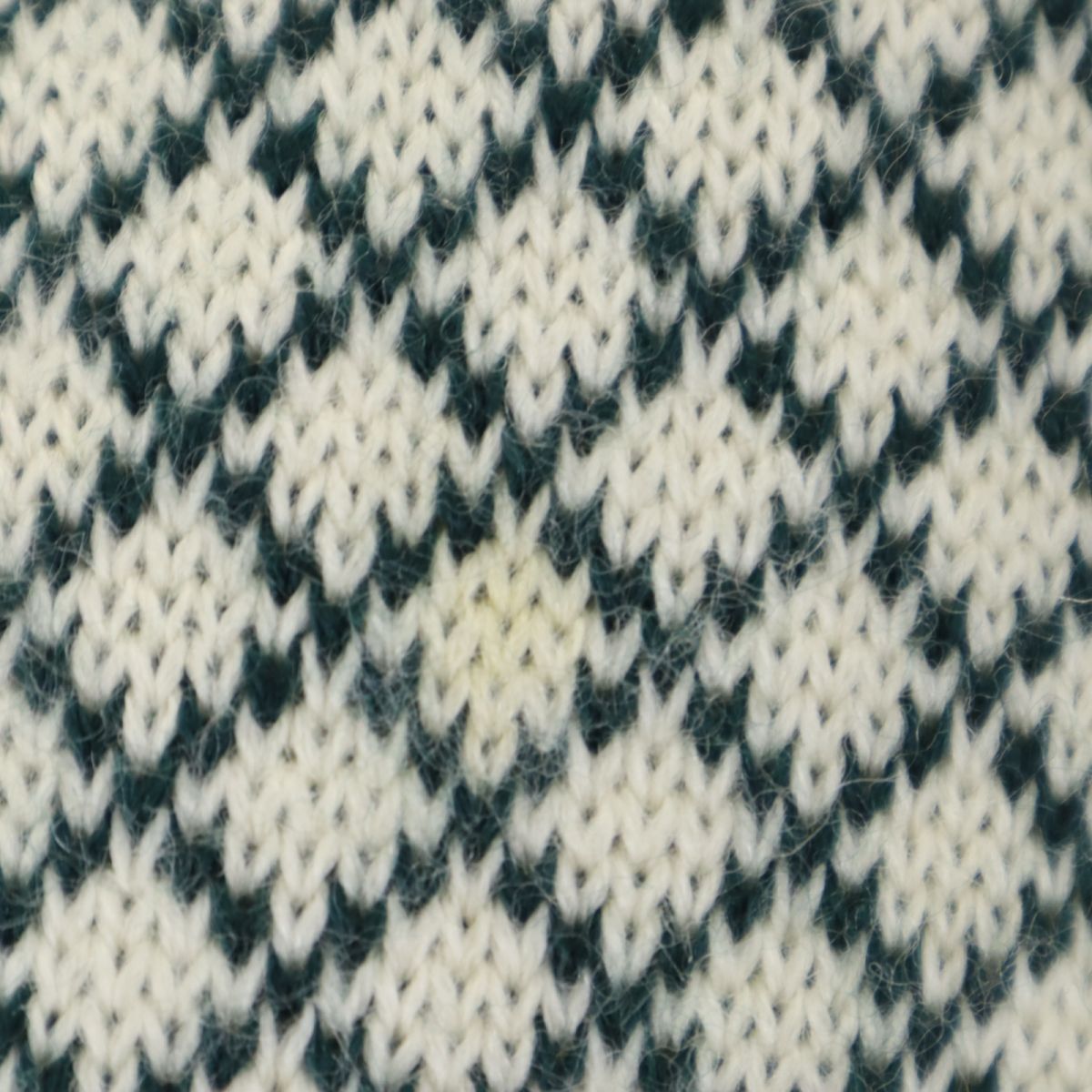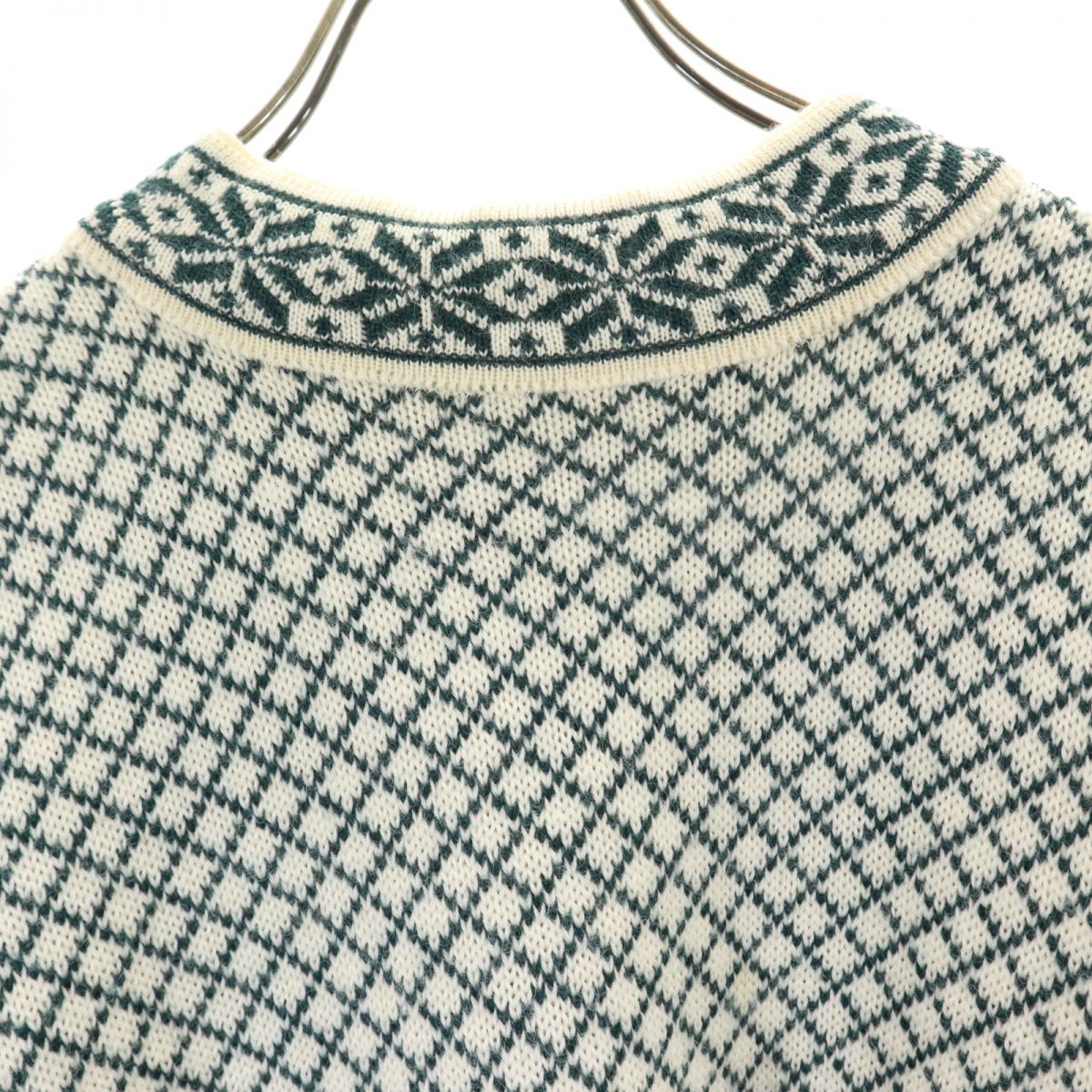 90s オールド チェック 長袖 ウール セーター S ホワイト×グリーン メンズ