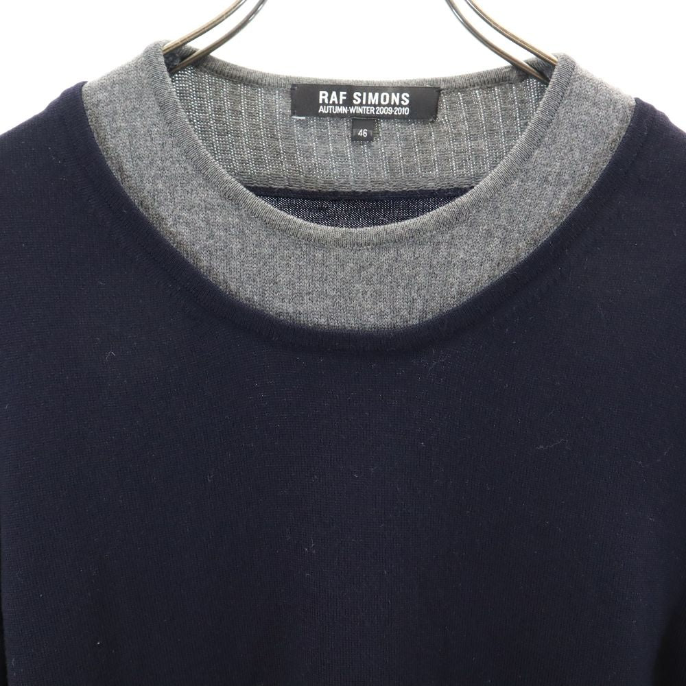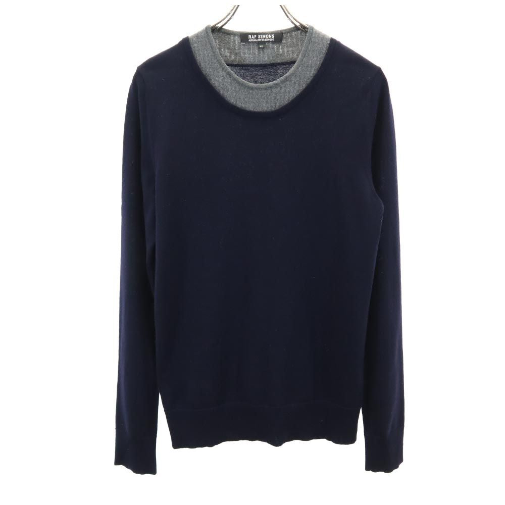 ラフシモンズ 長袖 切替 ウール セーター 46 ネイビー×グレー RAF SIMONS ニット メンズ