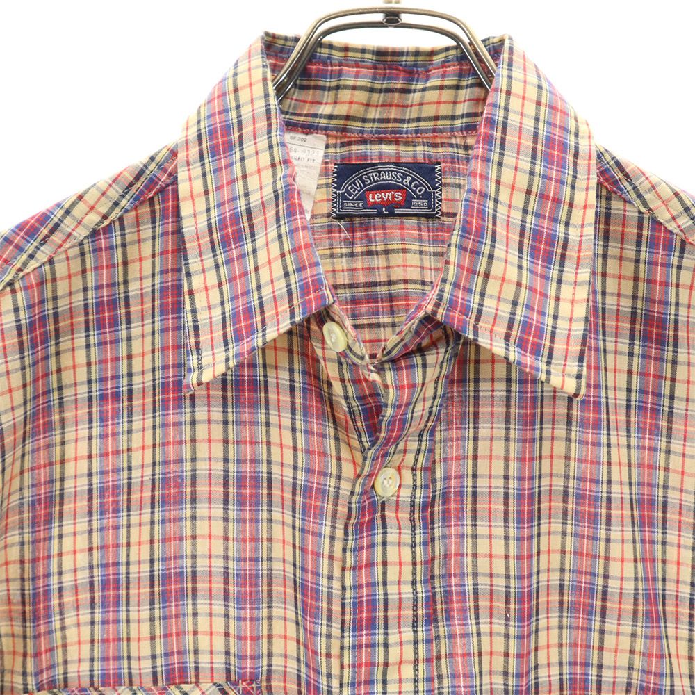 リーバイストラウス 70s USA製 ヴィンテージ チェック柄 長袖 シャツ L ブラウン系 メンズ