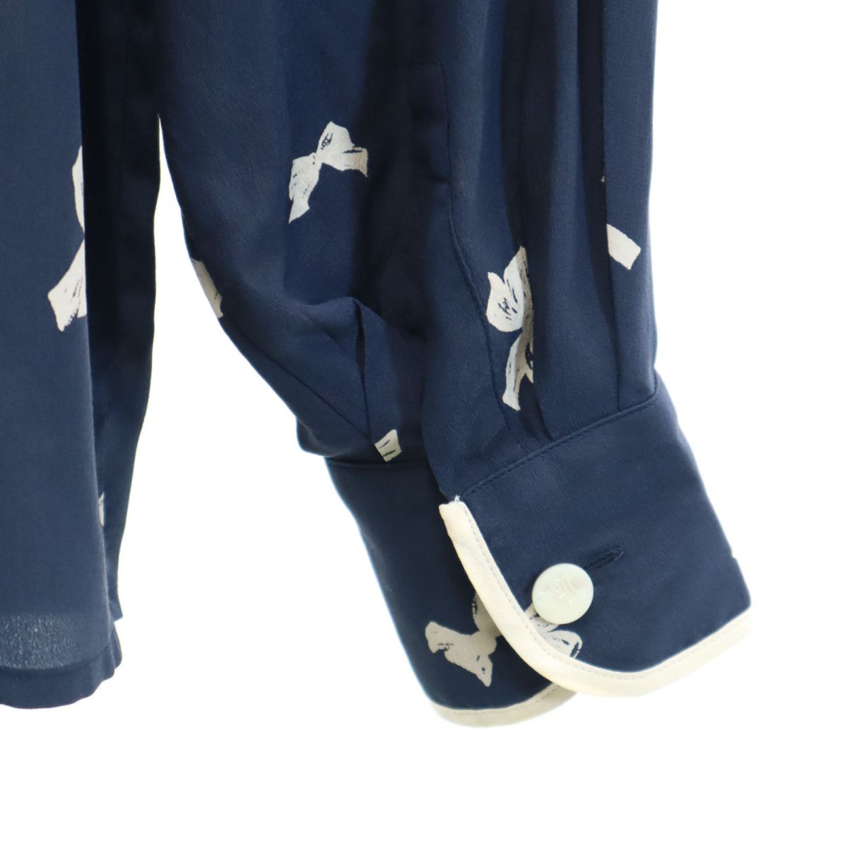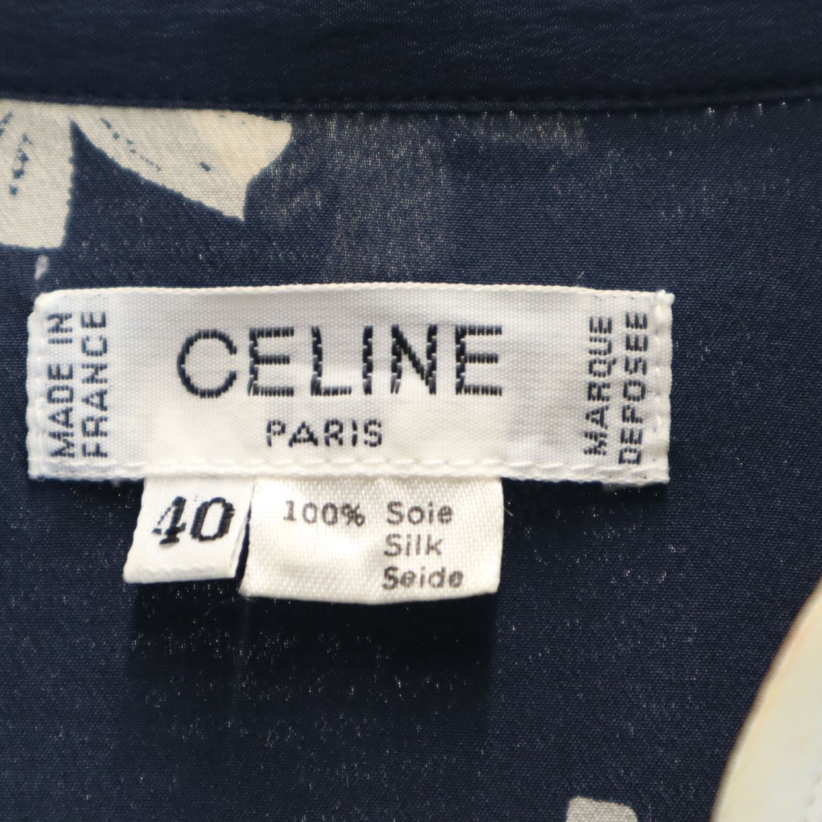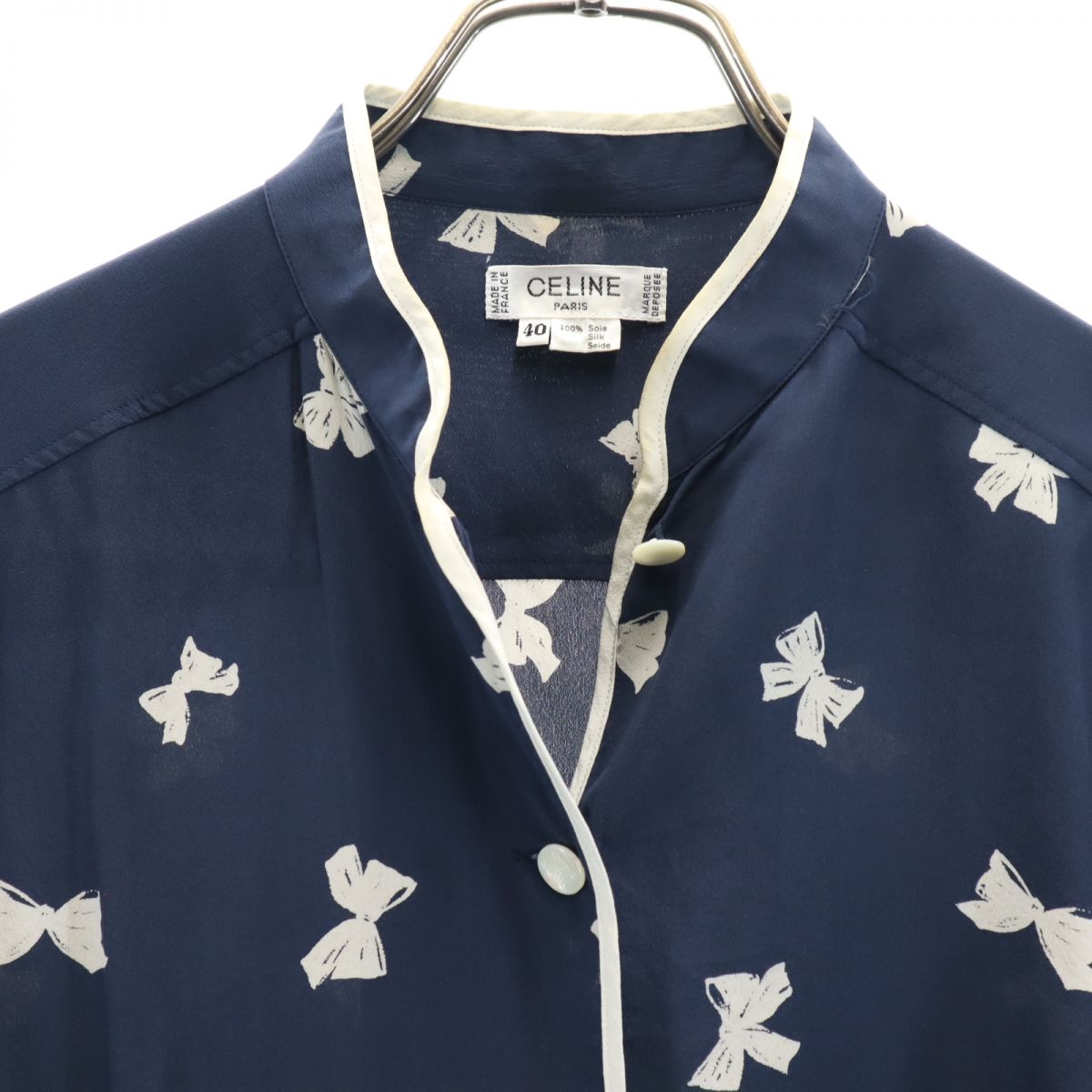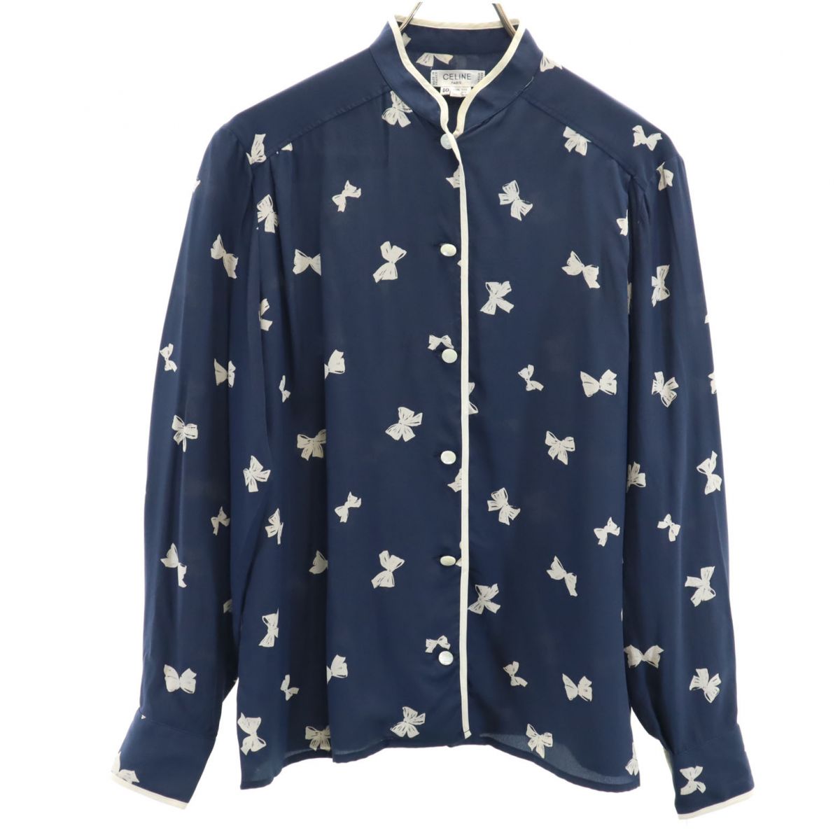 セリーヌ シルク100% オールド リボン柄 長袖 シャツ 40 ネイビー系 CELINE レディース