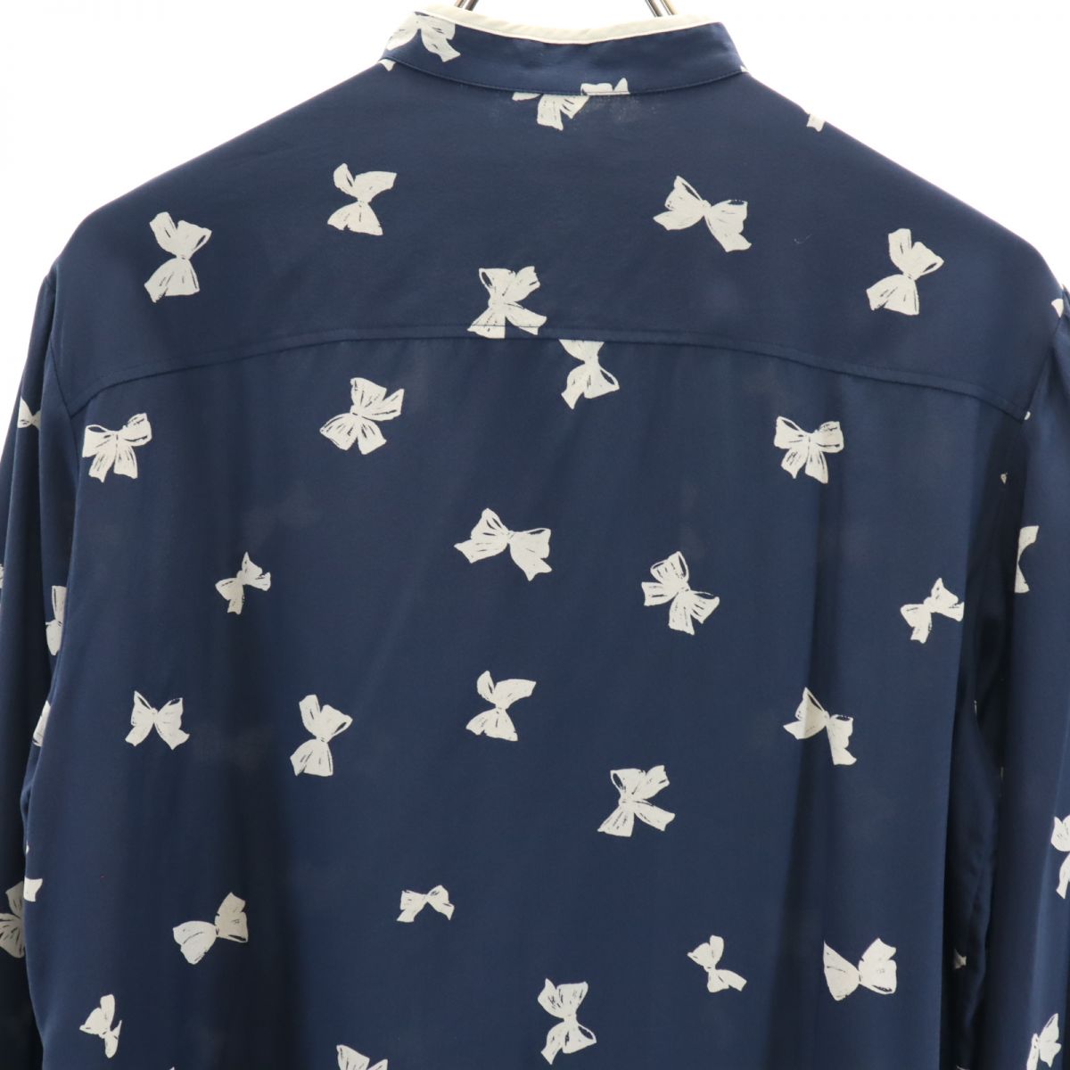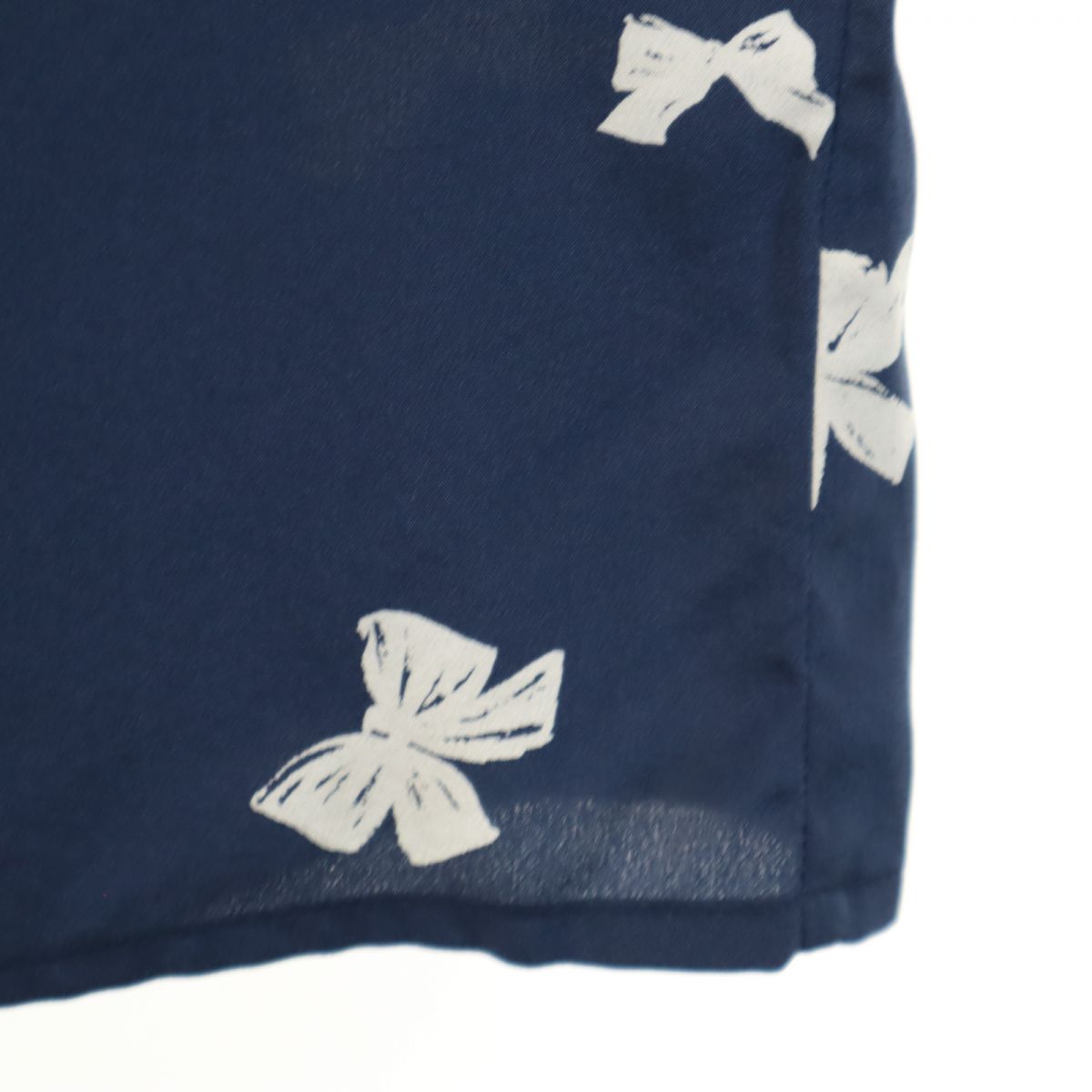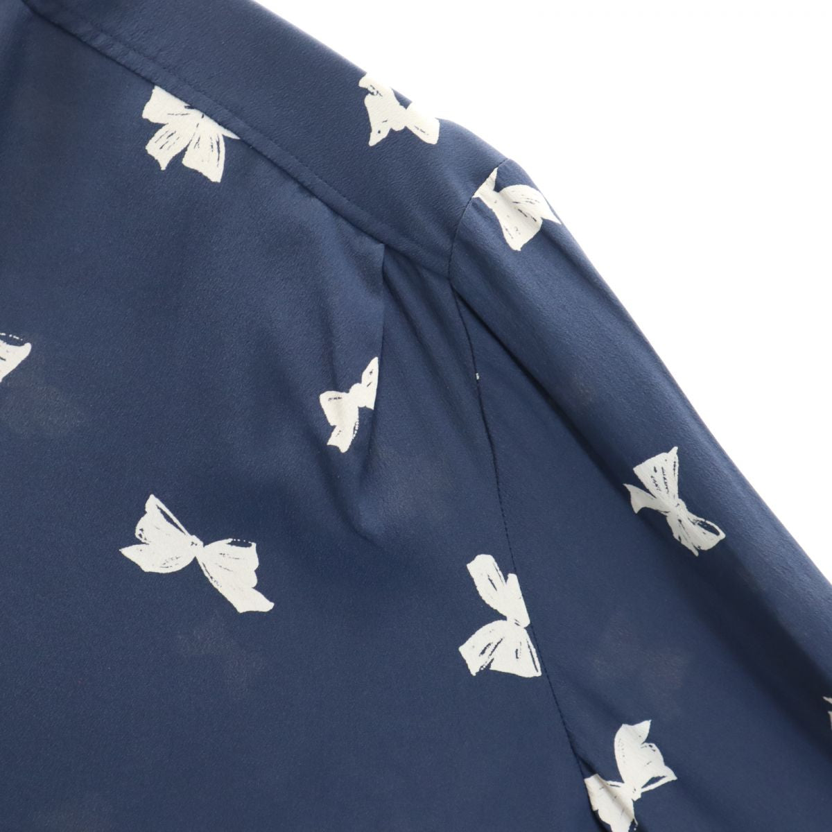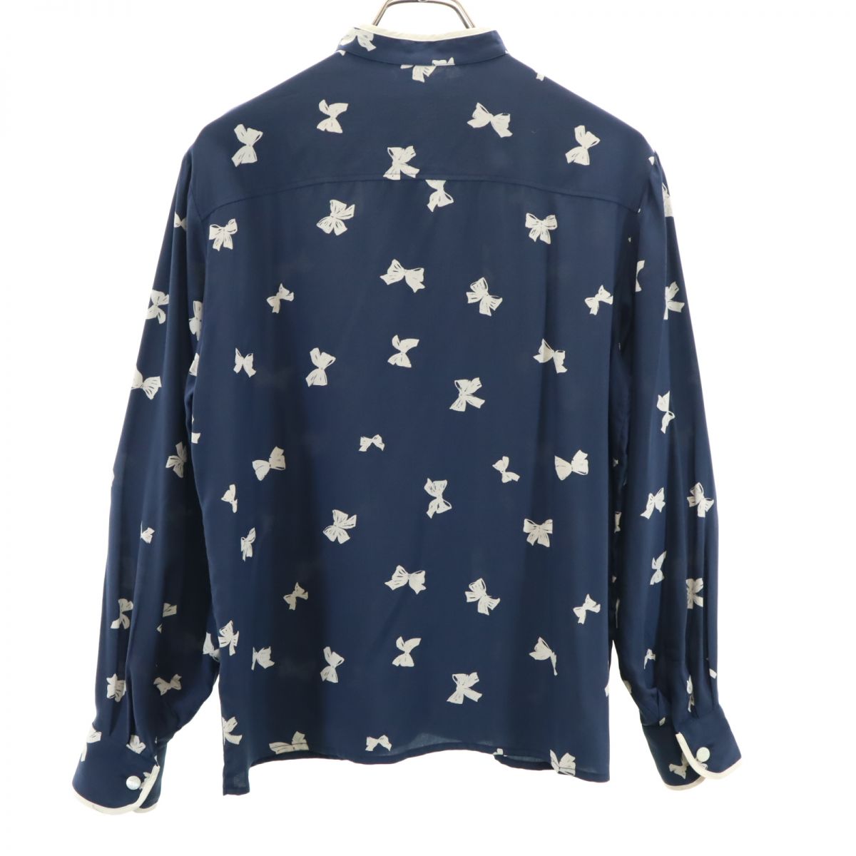 セリーヌ シルク100% オールド リボン柄 長袖 シャツ 40 ネイビー系 CELINE レディース