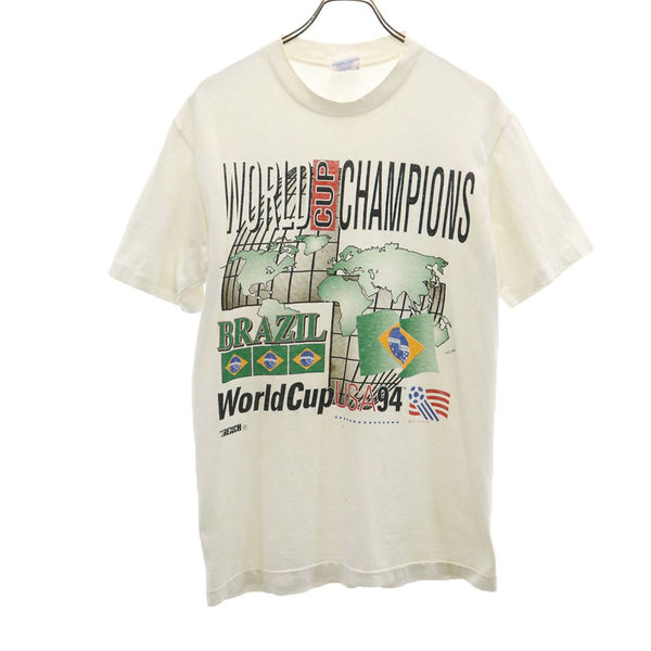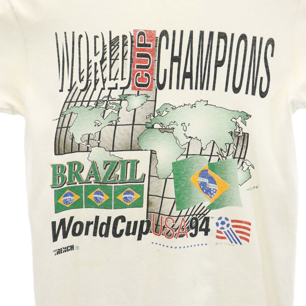 TRENCH トレンチ 90s USA製 オールド ワールドカップ ブラジル プリント 半袖 Tシャツ M ホワイト メンズ