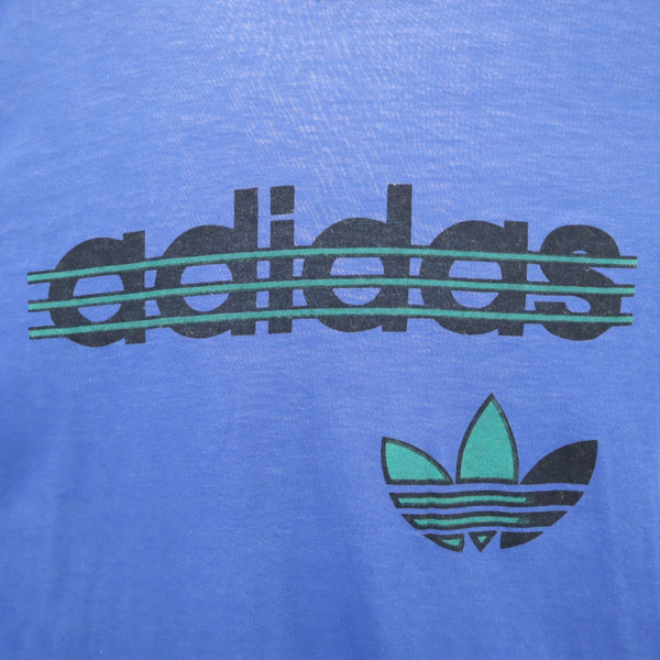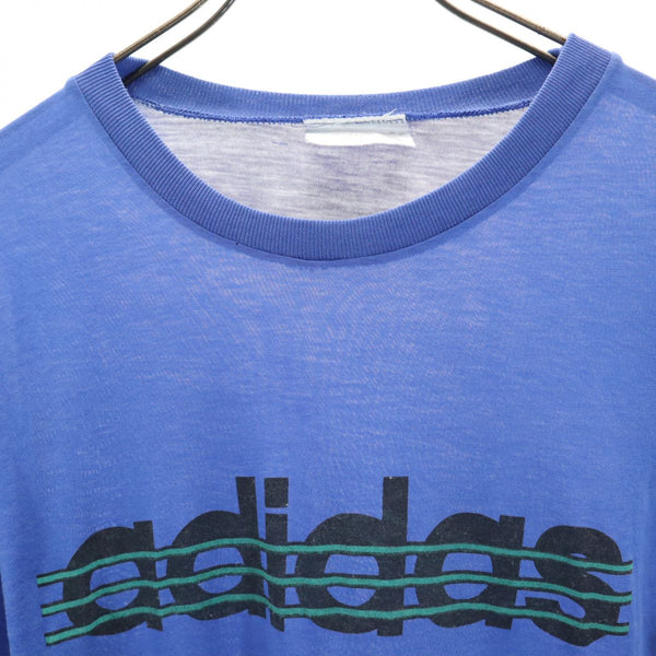 adidas アディダス 80s オールド プリント トレフォイルロゴ 半袖 Tシャツ XL ブルー メンズ