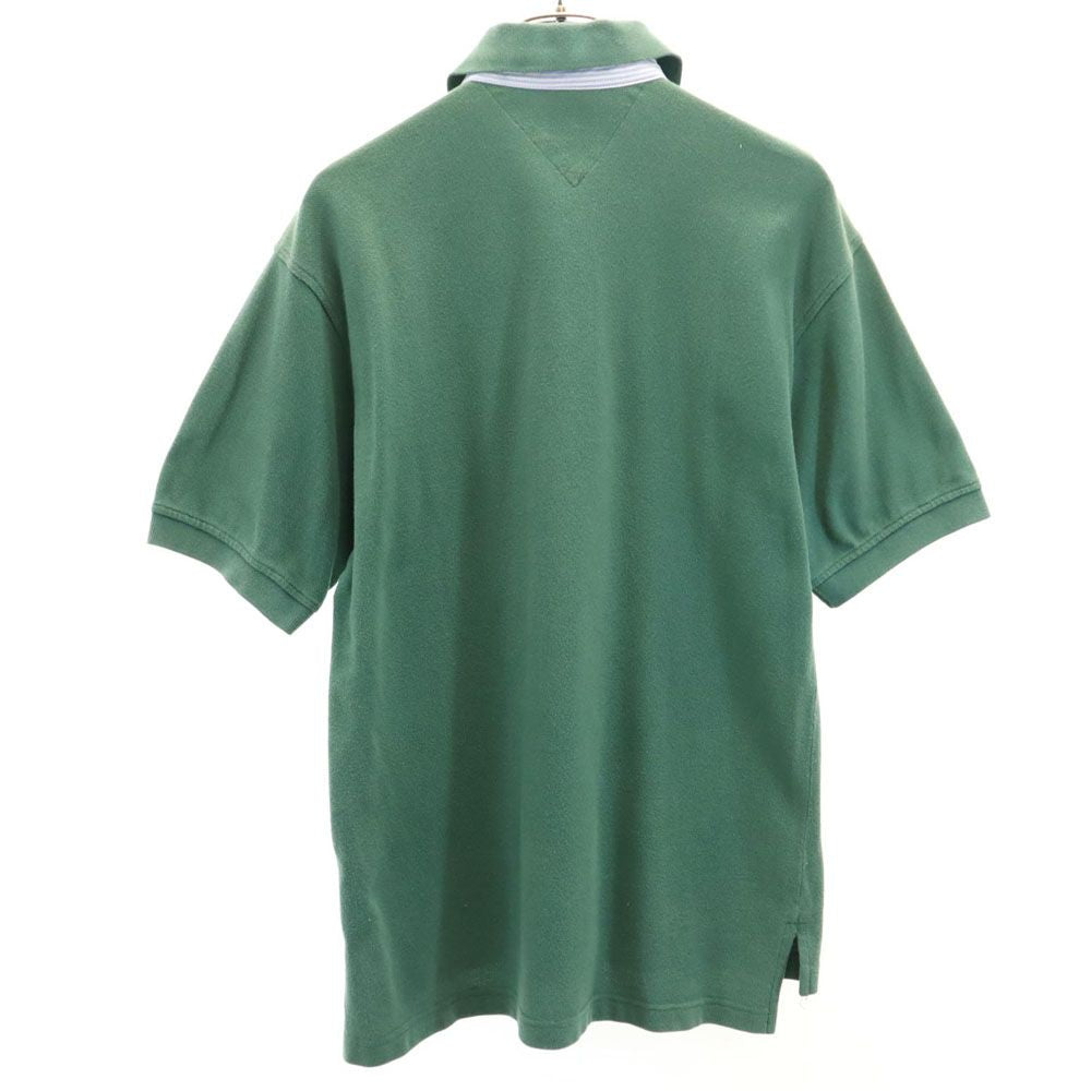 トミーヒルフィガー 90s フラッグタグ オールド 半袖 ポロシャツ M グリーン TOMMY HILFIGER 鹿の子 メンズ