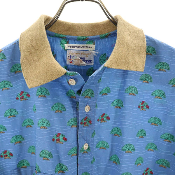 レインスプーナー 90s オールド 水着タグ 総柄 半袖 アロハ ポロシャツ S 水色系 reyn spooner メンズ