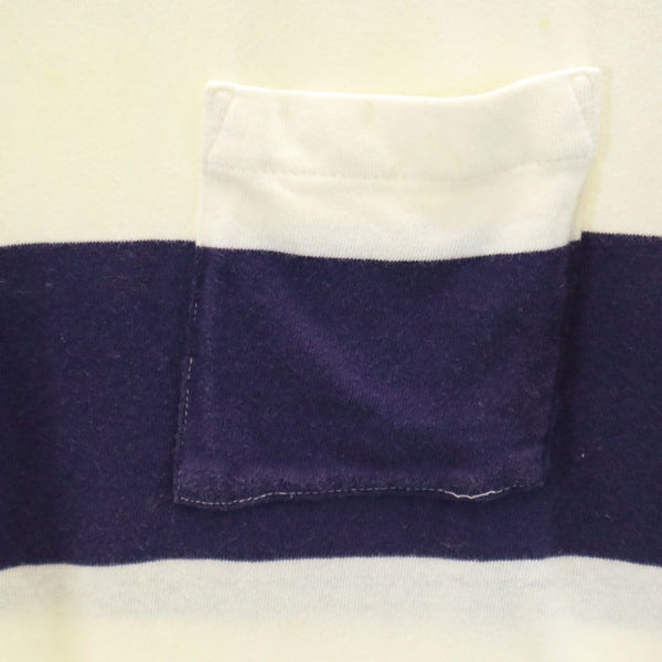 | 詳細 | 90年代のオールドのボーダーTシャツになります。全体的に黄ばみ・色褪せ・毛羽立ち、所々にシミ汚れ、腹部に穴、裾周りを中心にヨレ、着用感あり。胸ポケット下側にほつれがあり生地が開いています。古着にご理解の上ご購入お願いいたします。 |