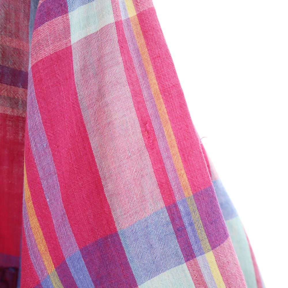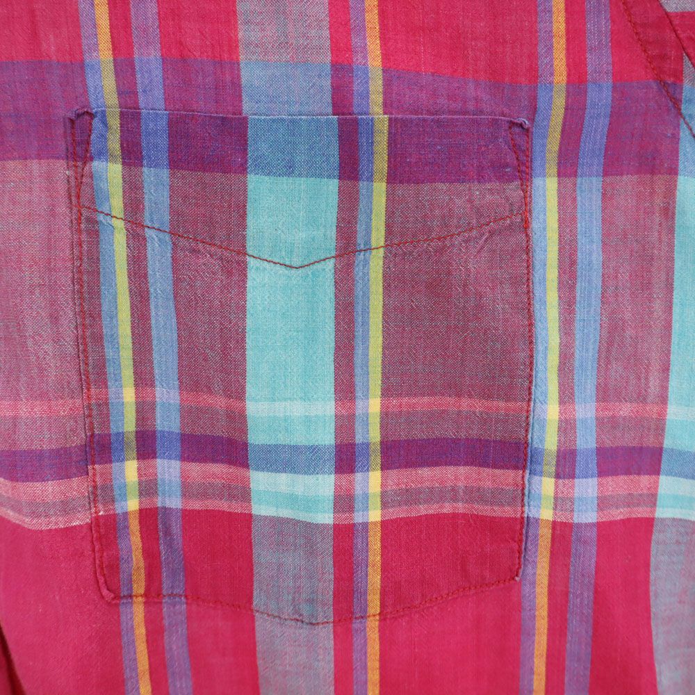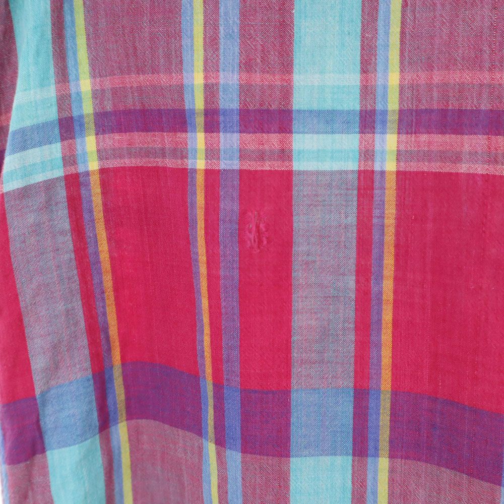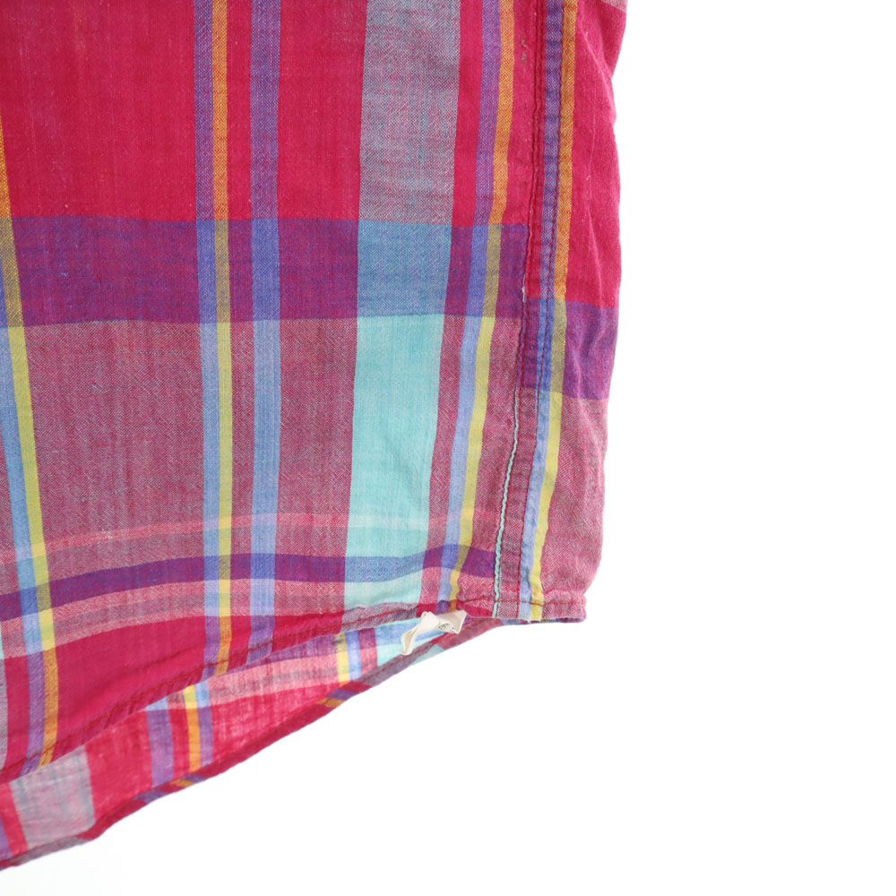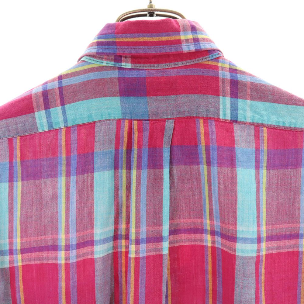 ランズエンド 90s USA製 オールド チェック柄 半袖 ボタンダウンシャツ M マゼンタ系 LANDS' END メンズ