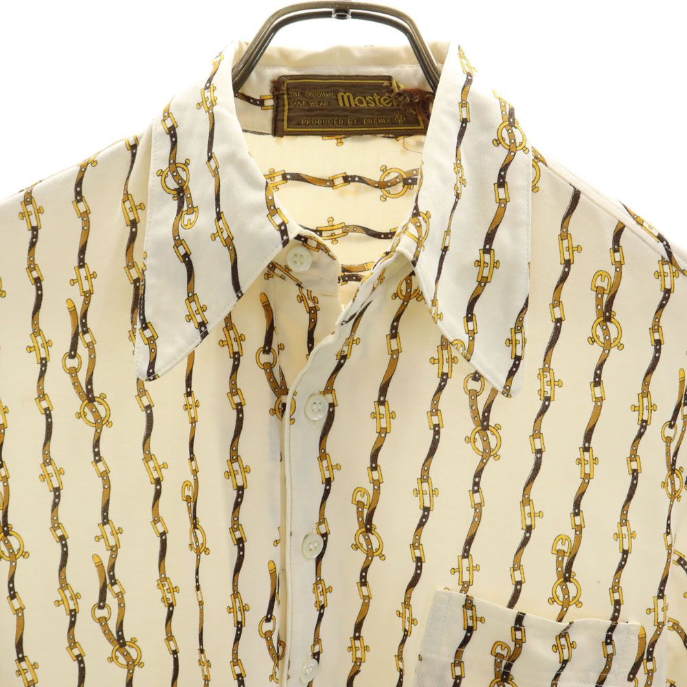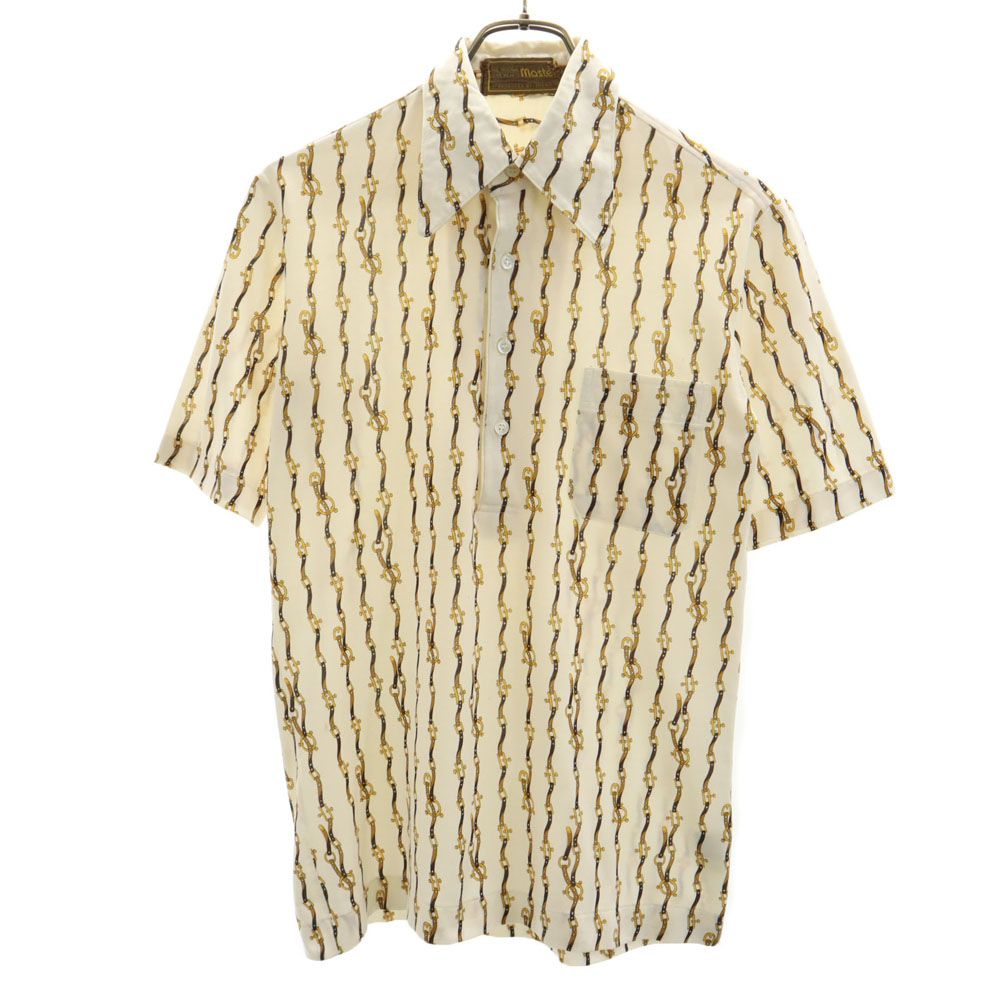 masters. 80s ヴィンテージ 総柄 半袖 ポロシャツ M ベージュ メンズ