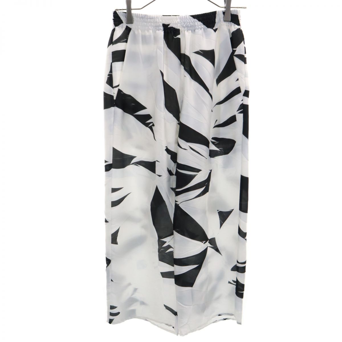 MM6 エムエムシックス イタリア製 総柄 シャーリング加工 クロップドパンツ 36 ホワイト系 ワイド ゴム仕様 レディース
