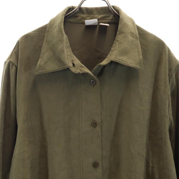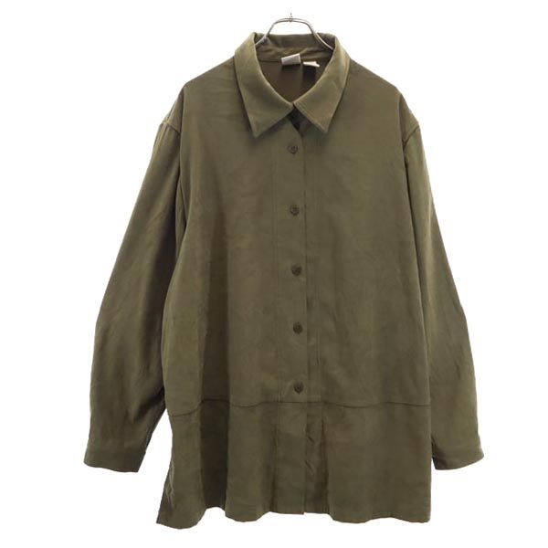 OLD オールド 90s オールド ベロア 長袖 ベロア ロングシャツ 22W カーキ カットソー レディース