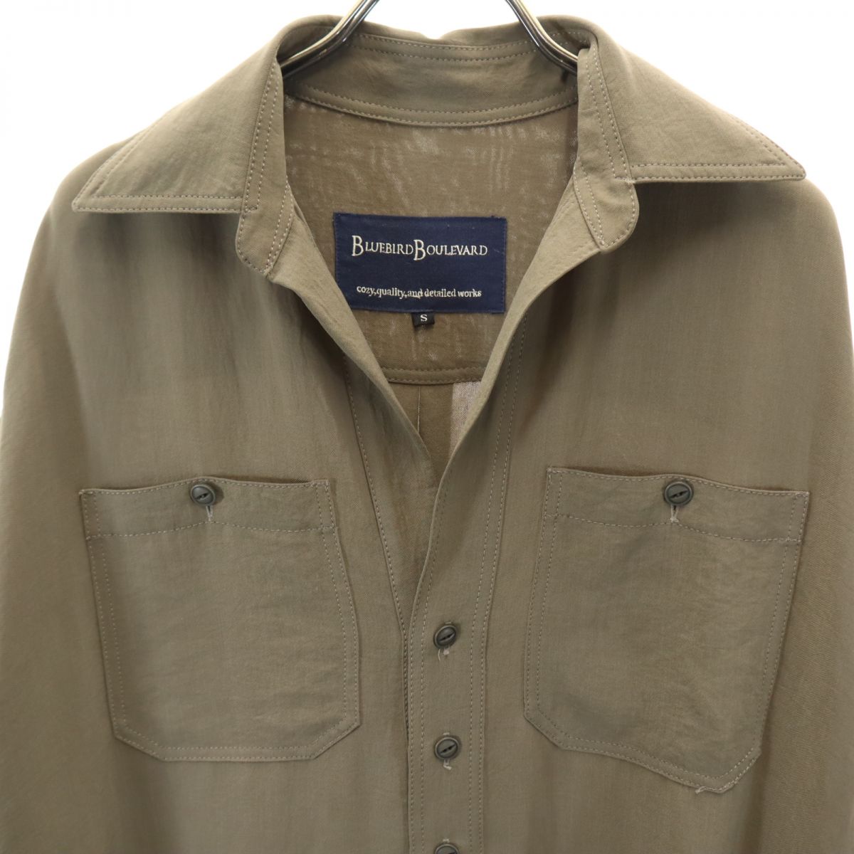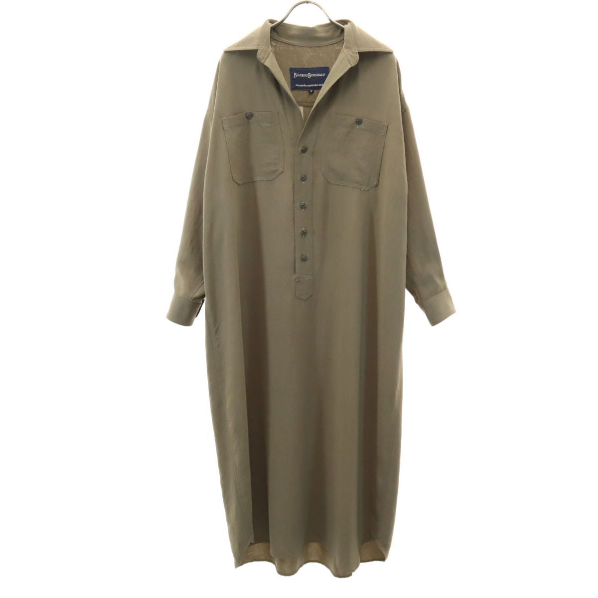 BLUEBIRD BOULEVARD ブルーバードブルバード 日本製 長袖 スキッパー ハーフボタン ロング シャツワンピース S カーキ レディース