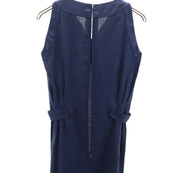CELINE セリーヌ フランス製 ノースリーブ リネン ミニワンピース 38 ネイビー レディース