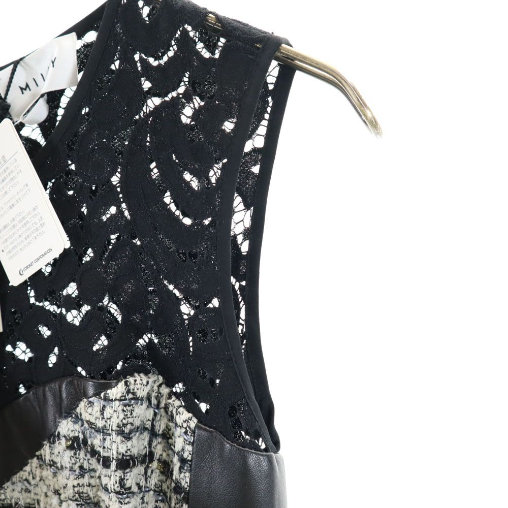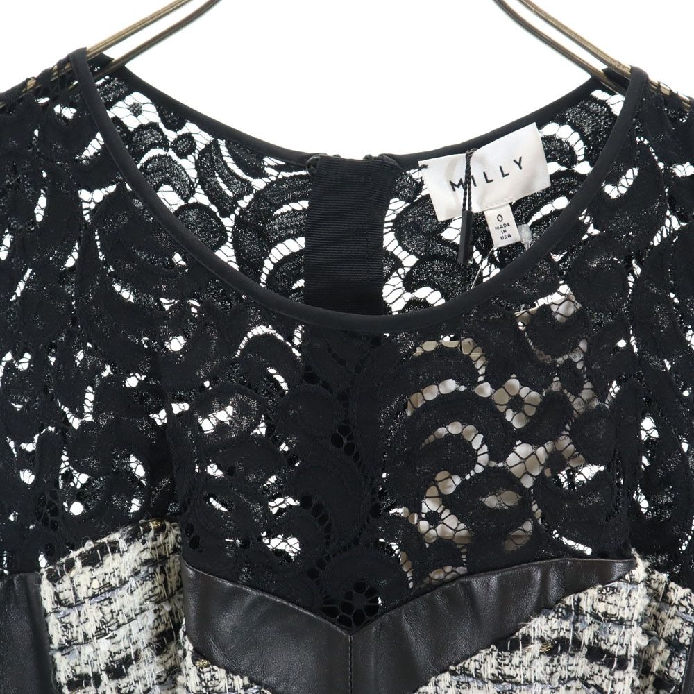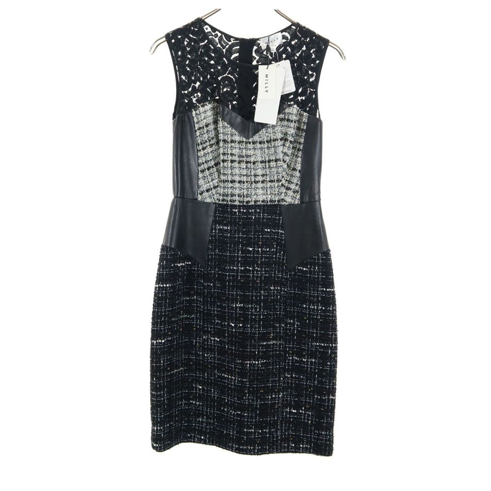 未使用 MILLY ミリー USA製 ノースリーブ レース ツイード切替 ワンピース ブラック レディース