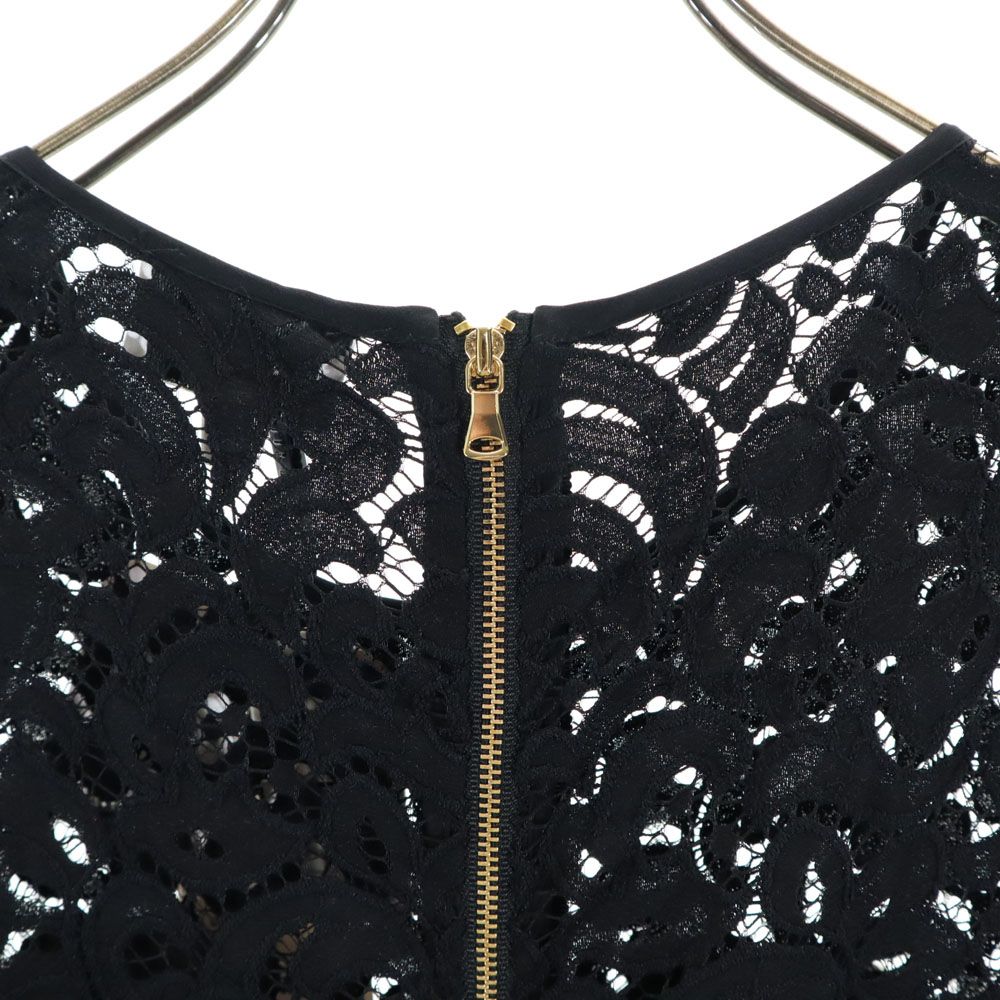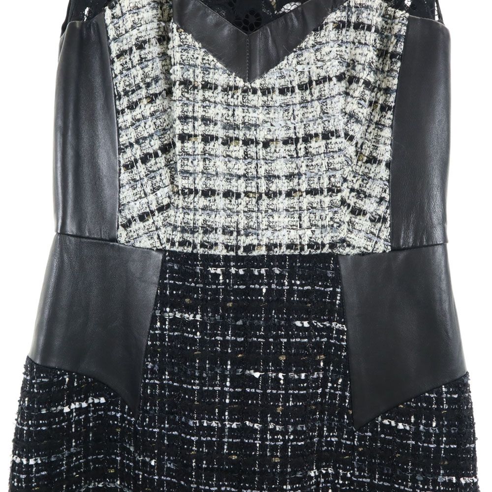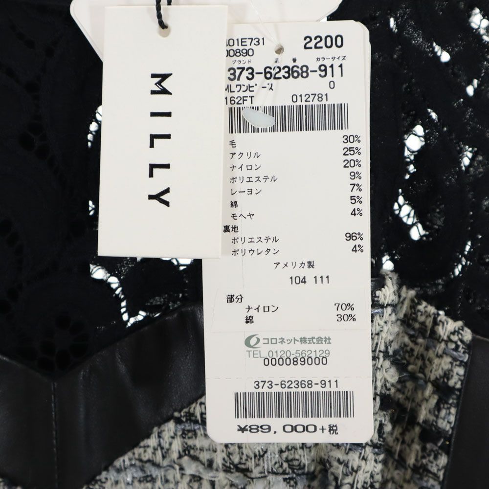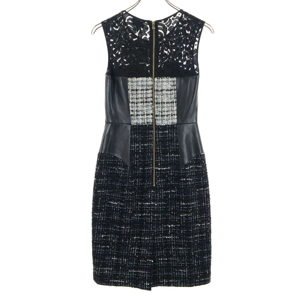 未使用 MILLY ミリー USA製 ノースリーブ レース ツイード切替 ワンピース ブラック レディース