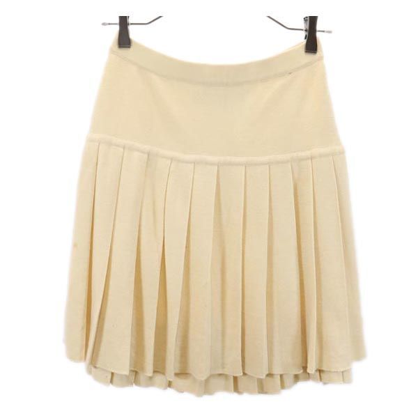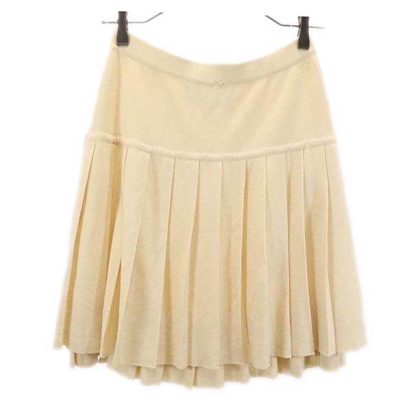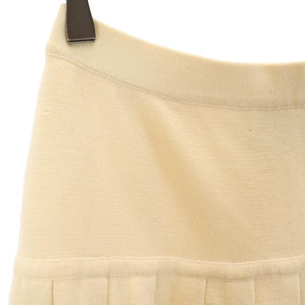 CHANEL シャネル イタリア製 ミニ丈 ウールニット スカート 40 オフホワイト プリーツ切替 レディース