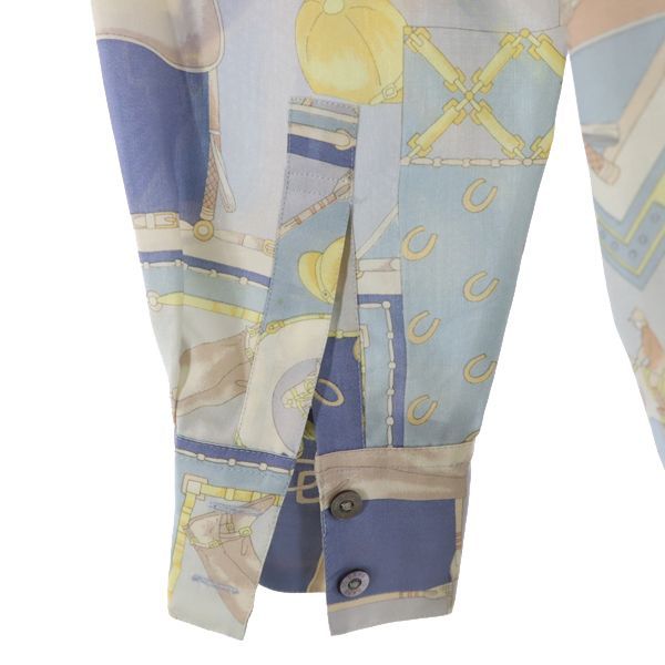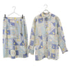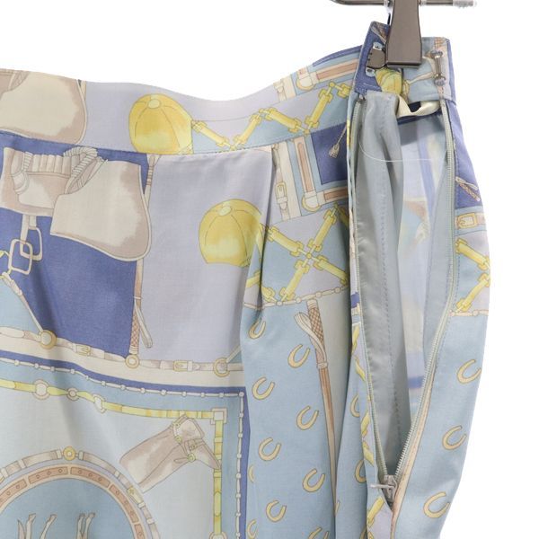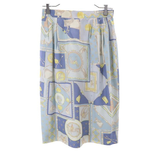 DAKS ダックス シルクブレンド 乗馬柄 長袖 シャツ 上下 セットアップ 9R ブルー系 スカート レディース