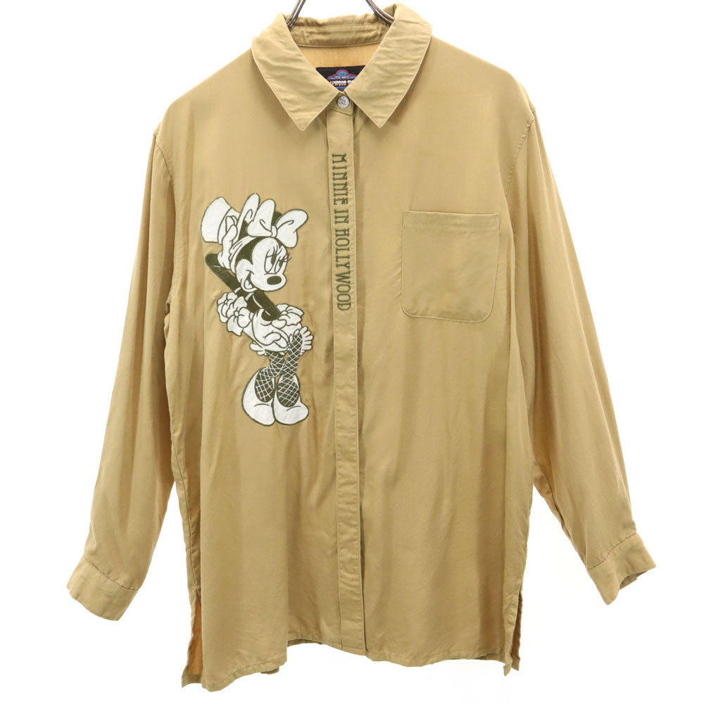 ハリウッドミッキー 90s 日本製 オールド ミニーマウス 長袖 シャツ ブラウン系 HOLLYWOODMICHEY 刺繍 レディース