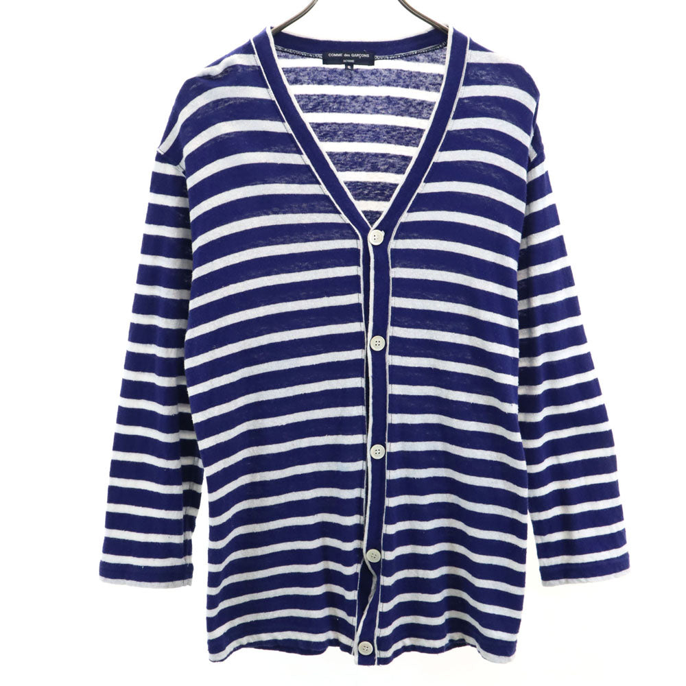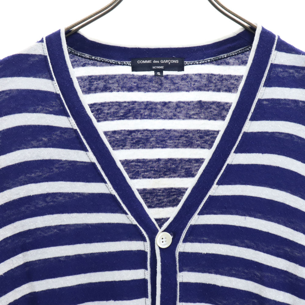 COMME des GARCONS HOMME コムデギャルソンオム 日本製 ボーダー柄 長袖 Vネック カーディガン S ブルー×ホワイト メンズ