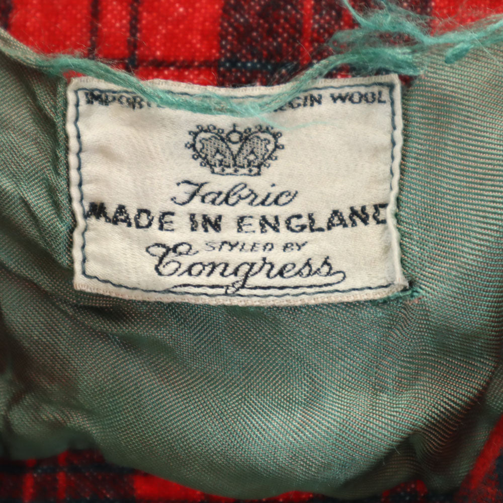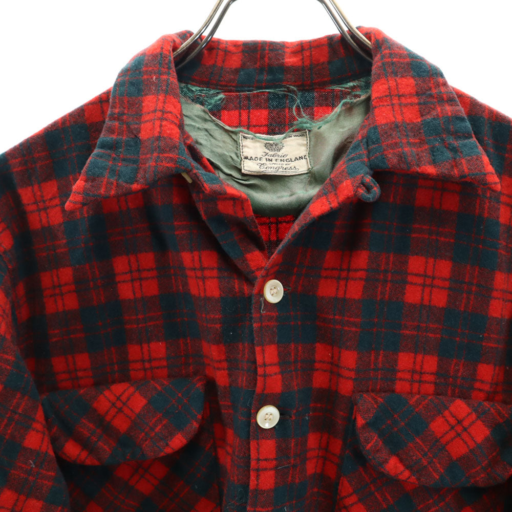 Congress 50s 60s イングランド製 ヴィンテージ チェック柄 長袖 オープンカラー ネルシャツ レッド 他 メンズ