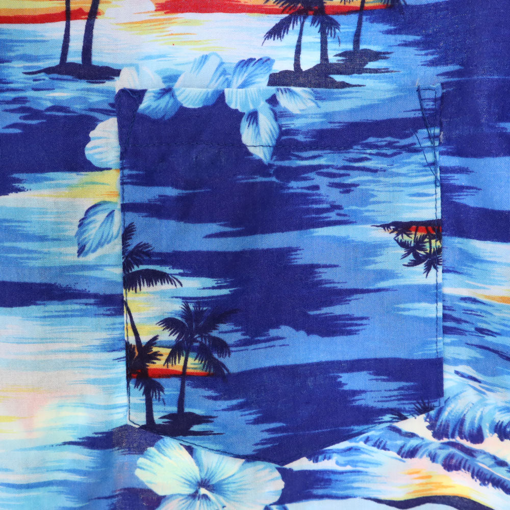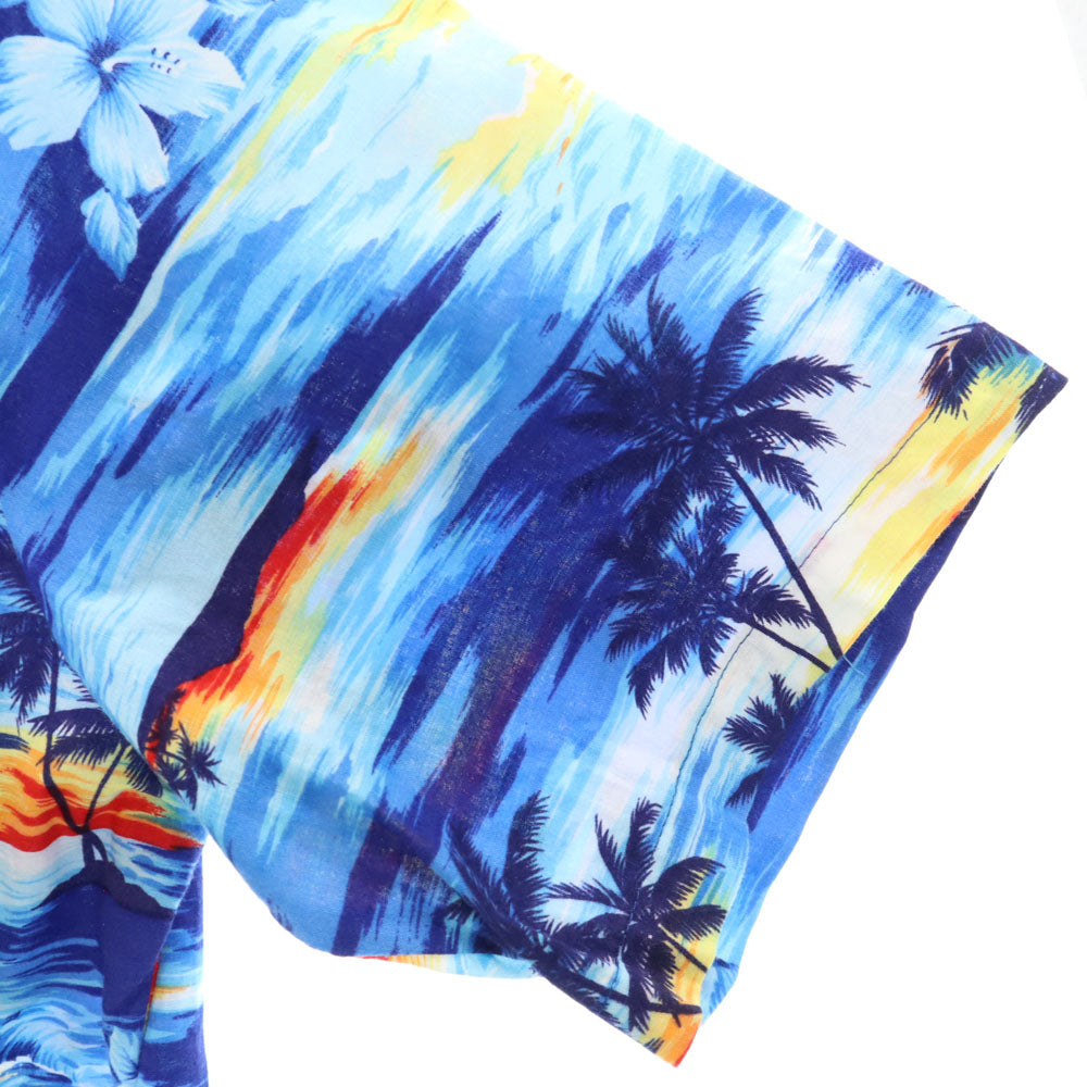 トロピカルエッセンス 90s USA製 オールド パームツリー柄 半袖 アロハシャツ 上下 セットアップ L ブルー Tropical Essence ショートパンツ ビーチウェア ハイビスカス メンズ