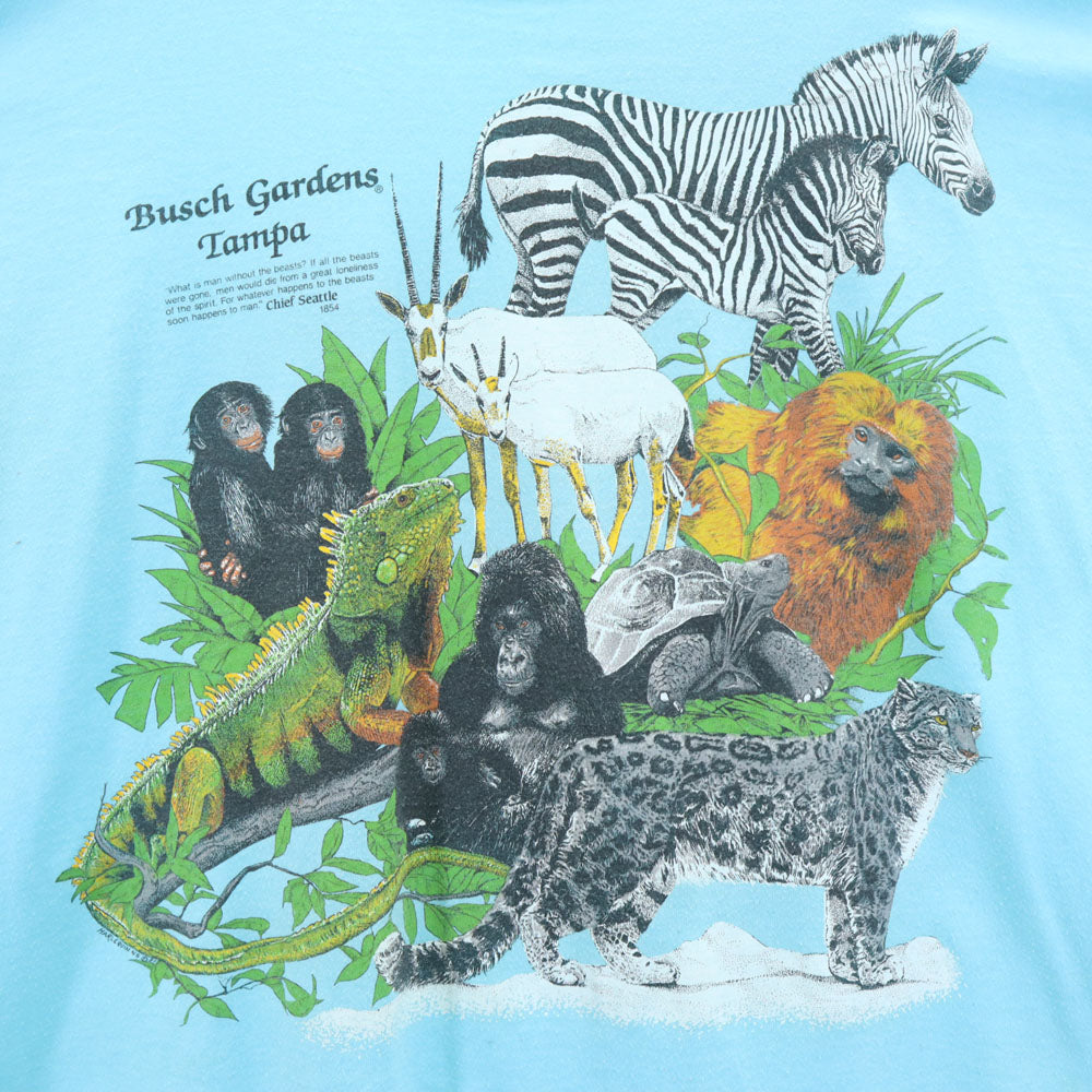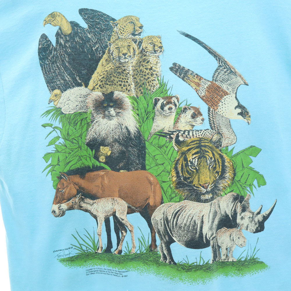 スクリーンスターズベスト 80s USA製 アニマルプリント 半袖 Tシャツ XL 水色 SCREEN STARS BEST シングルステッチ オールド ヴィンテージ メンズ