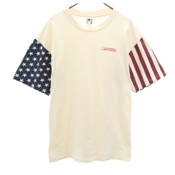 L.A.T SPORTSWEAR 90s USA製 アメリカ国旗柄 半袖 Tシャツ XL ベージュ系 シングルステッチ オールド メンズ