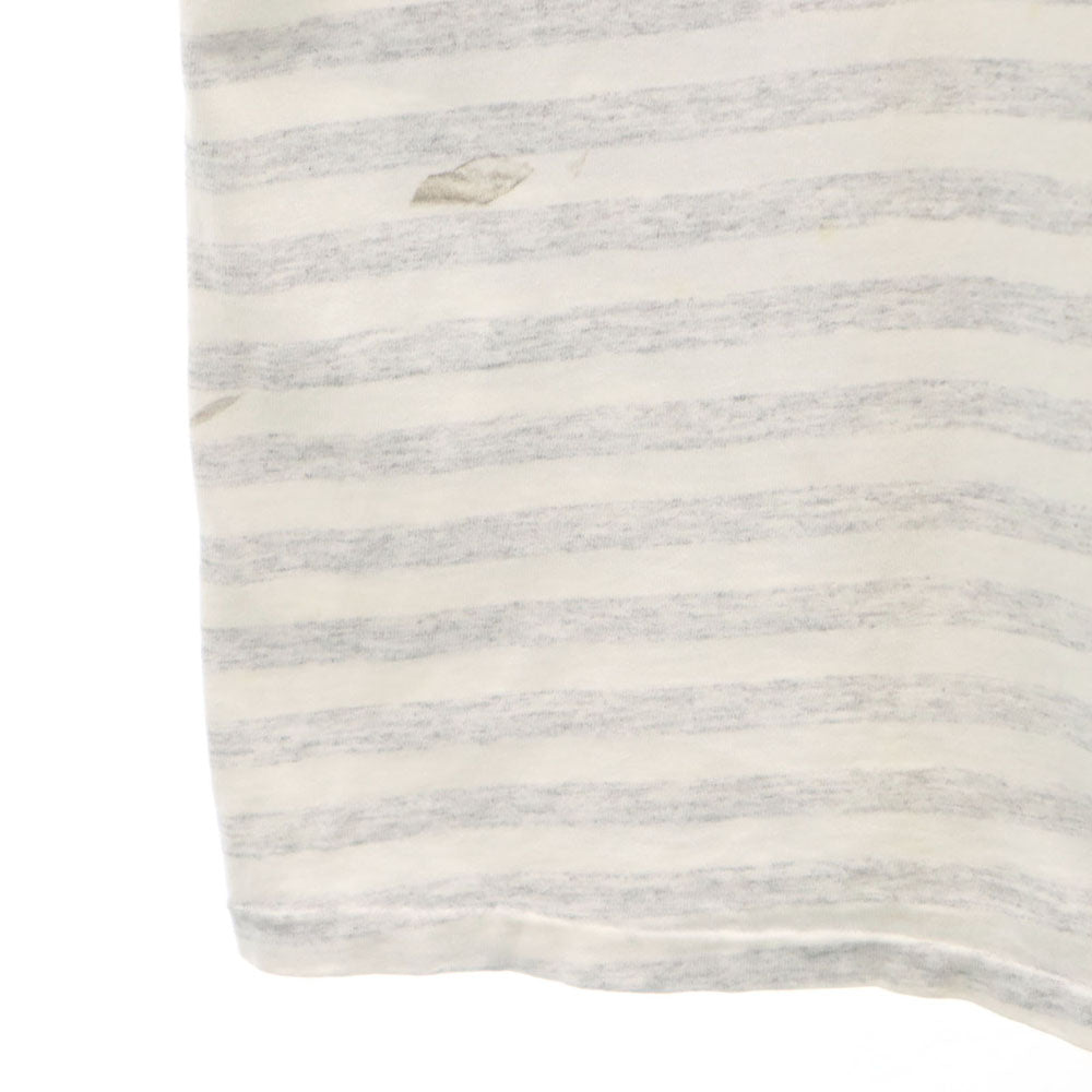| 詳細 | 90年代製のボーダー柄プリントTシャツになります。全体的に色褪せ、毛羽立ち、首周りに茶汚れ、脇に黄ばみ、前身頃右サイドに擦ったような黒い汚れあり。ご理解の上ご購入をお願いいたします。 |