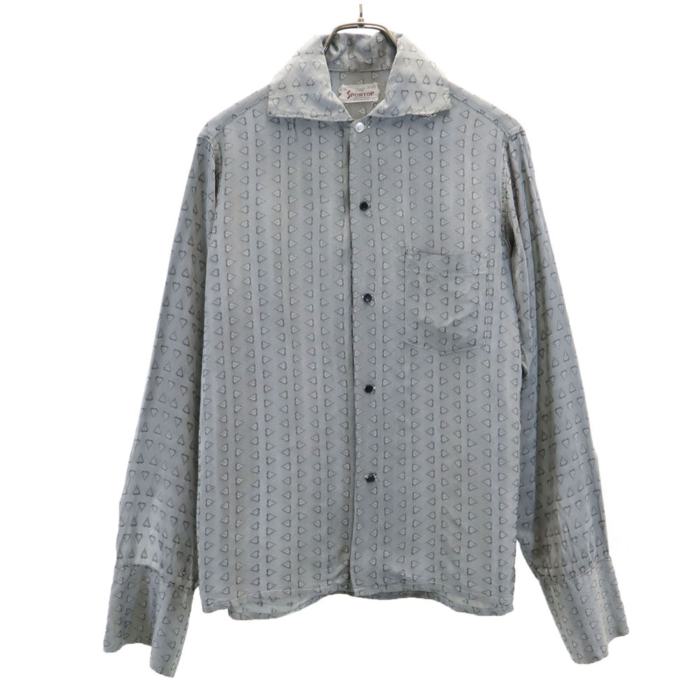SPORTOP 50s イタリアンカラー ボックスカット 開襟 総柄 長袖 シャツ M グレー メンズ