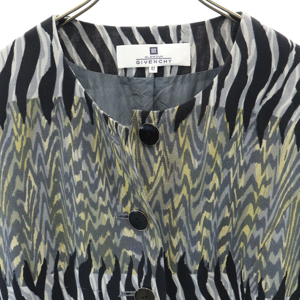 GIVENCHY ジバンシィ 90s オールド 総柄 ノーカラー ジャケット 42 グレー 他 レディース