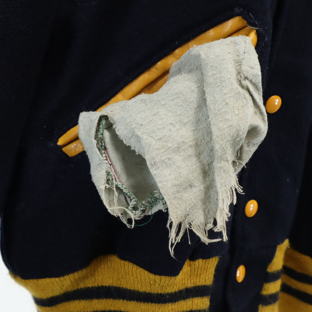 | 詳細 | 70年代のデロングのセーラースタジャンになります。品質詳細不明。全体的に毛羽立ち、所々に毛玉、繊維の付着、各リブに毛羽立ちや穴、両ポケットの中に破れあり。ご理解の上ご購入をお願いいたします。 |