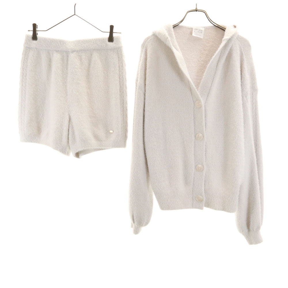 ジェラートピケ 長袖 Vネックカーディガン ルームウェア 上下 セットアップ F グレー gelato pique ふわモコ レディース